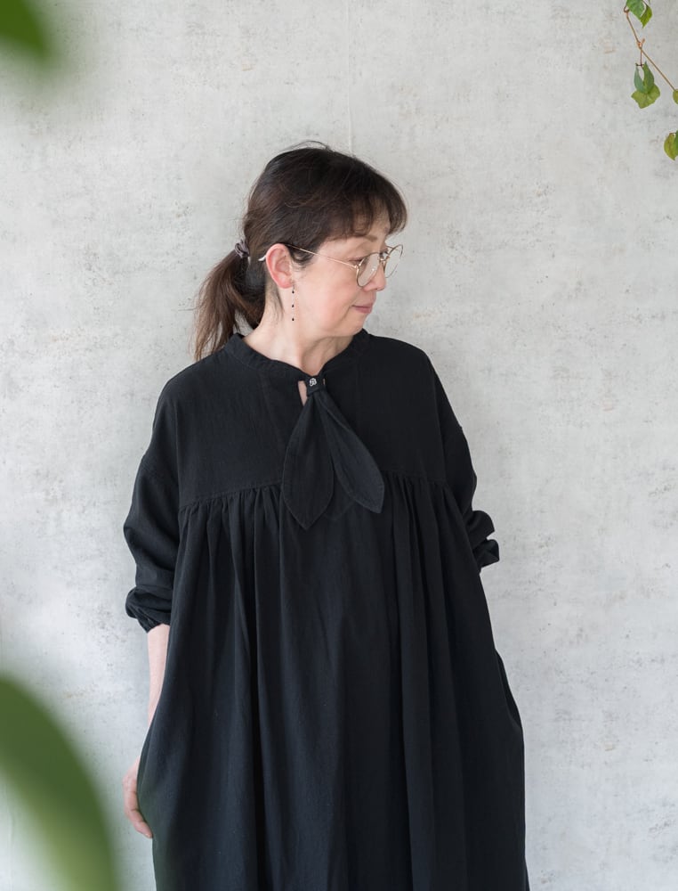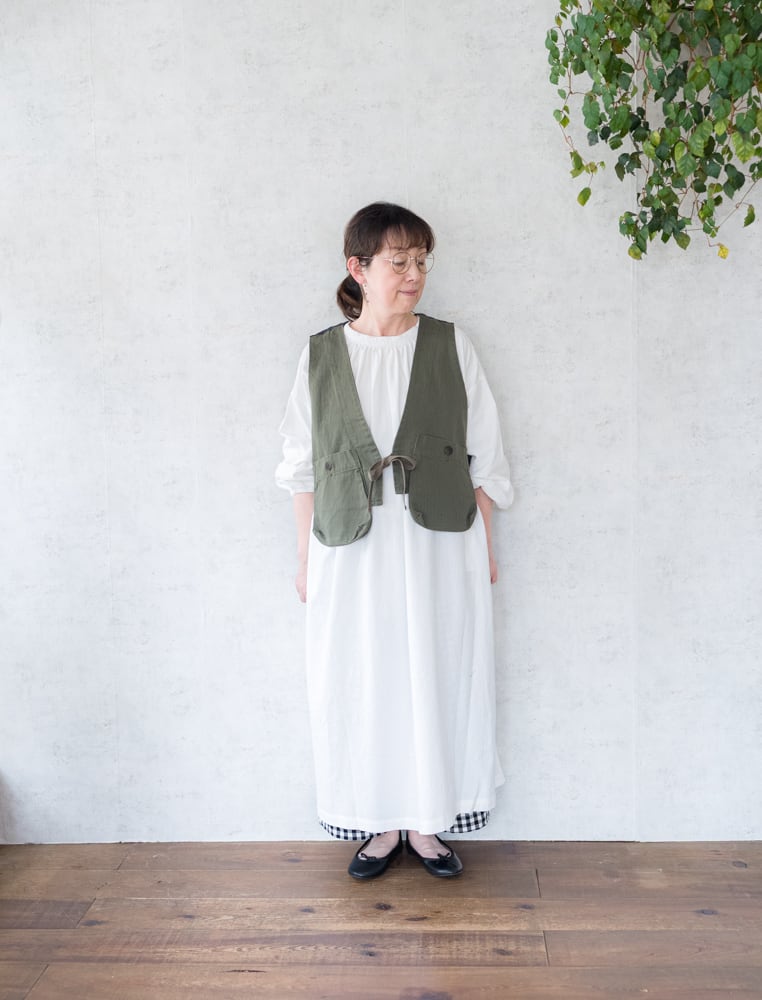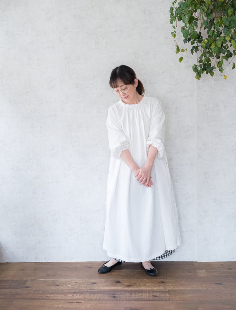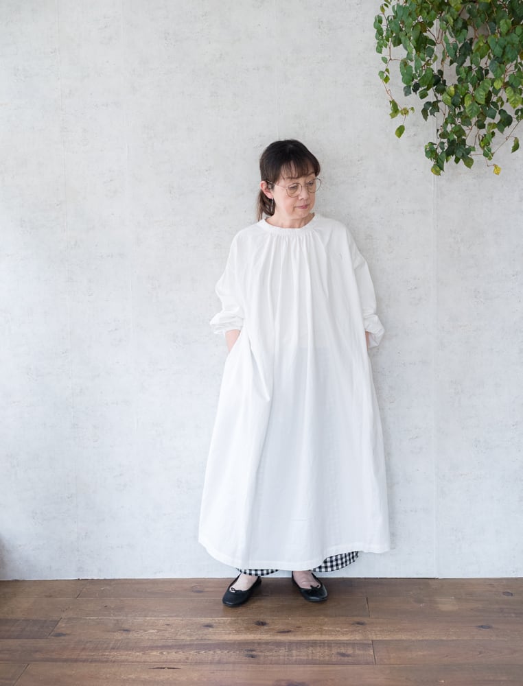 ギャザーたっぷりのボリュームのあるシルエットで、通気性の良い春夏にピッタリの爽やかな雰囲気です。