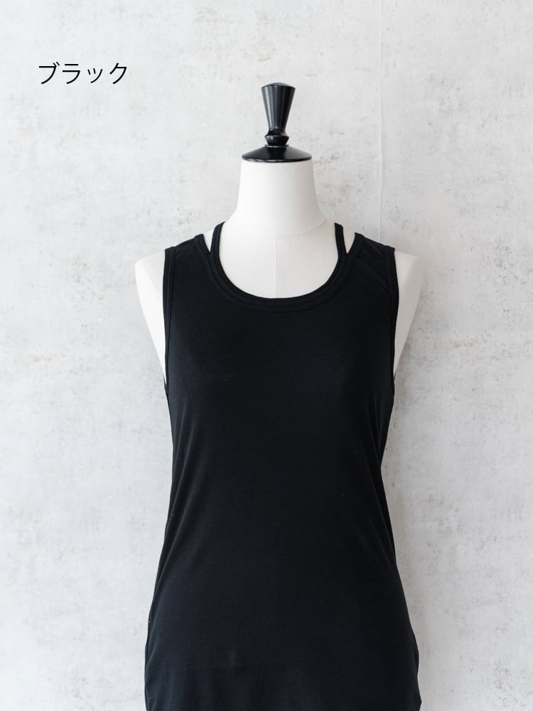 肩紐の バインダーが着こなしのアクセントになってくれる夏のインナーには欠かせない定番タンクトップ。