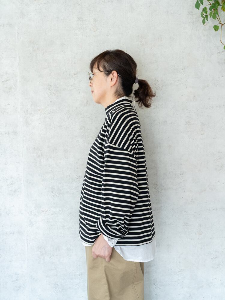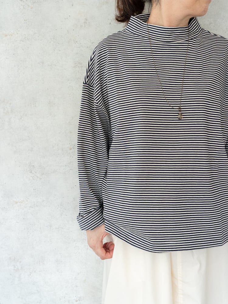 さらっとした心地よい肌触り優しく包み込んでくれるシルエット、襟元が少し高めのデザインで、首元の開きを気にせず着ていただけます。