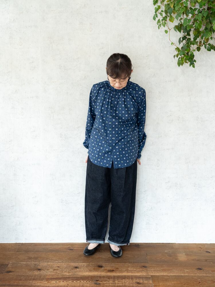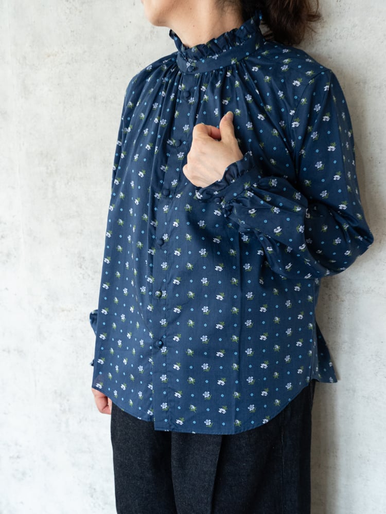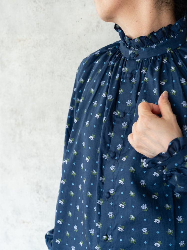 品のある色使いや小花柄が美しいリバティの生地に、一匙の女性らしさを加えたような美しいブラウスです。