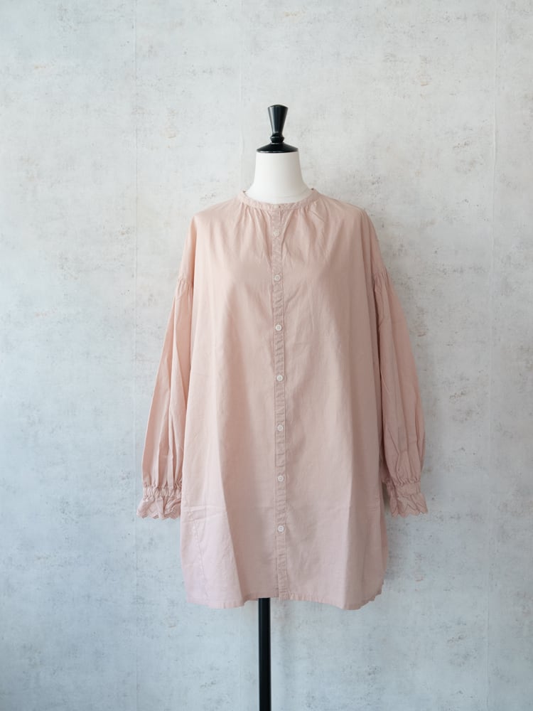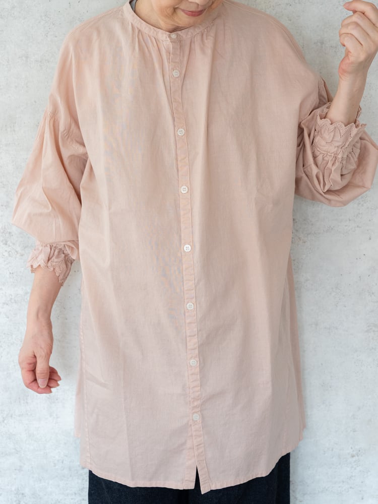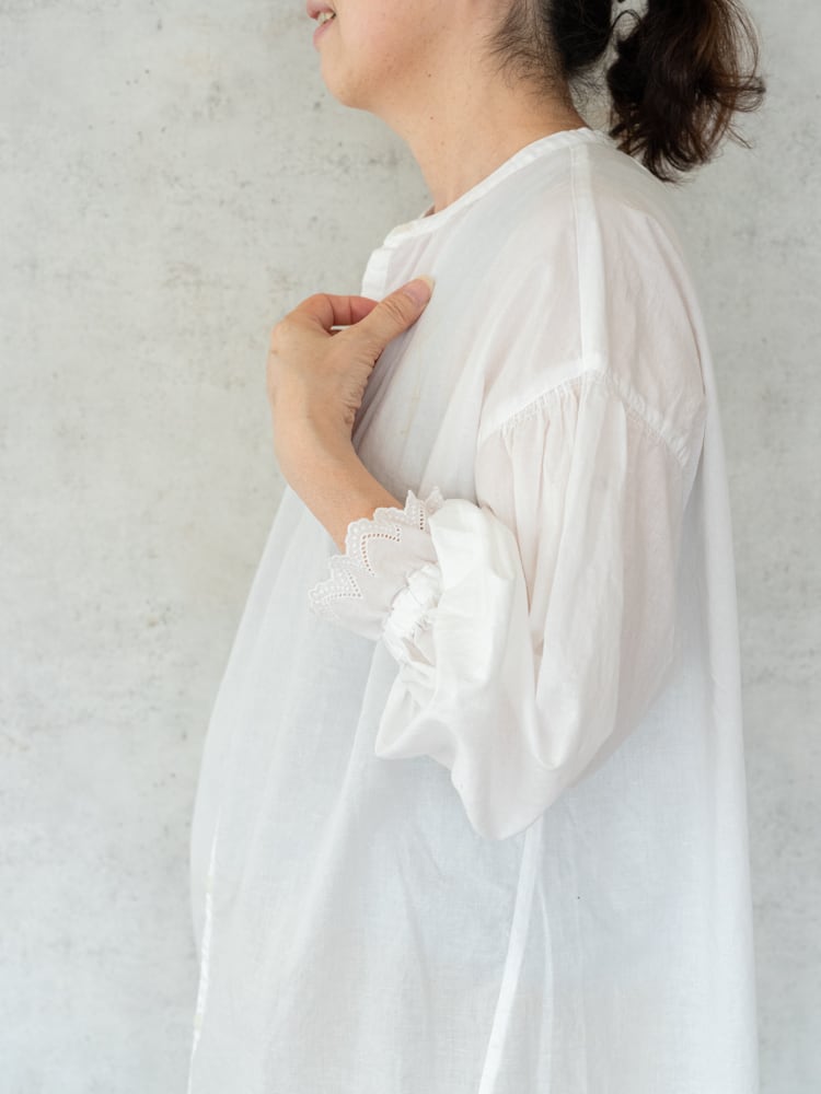 [grin] 綿麻キャンブリック袖レースロングシャツ