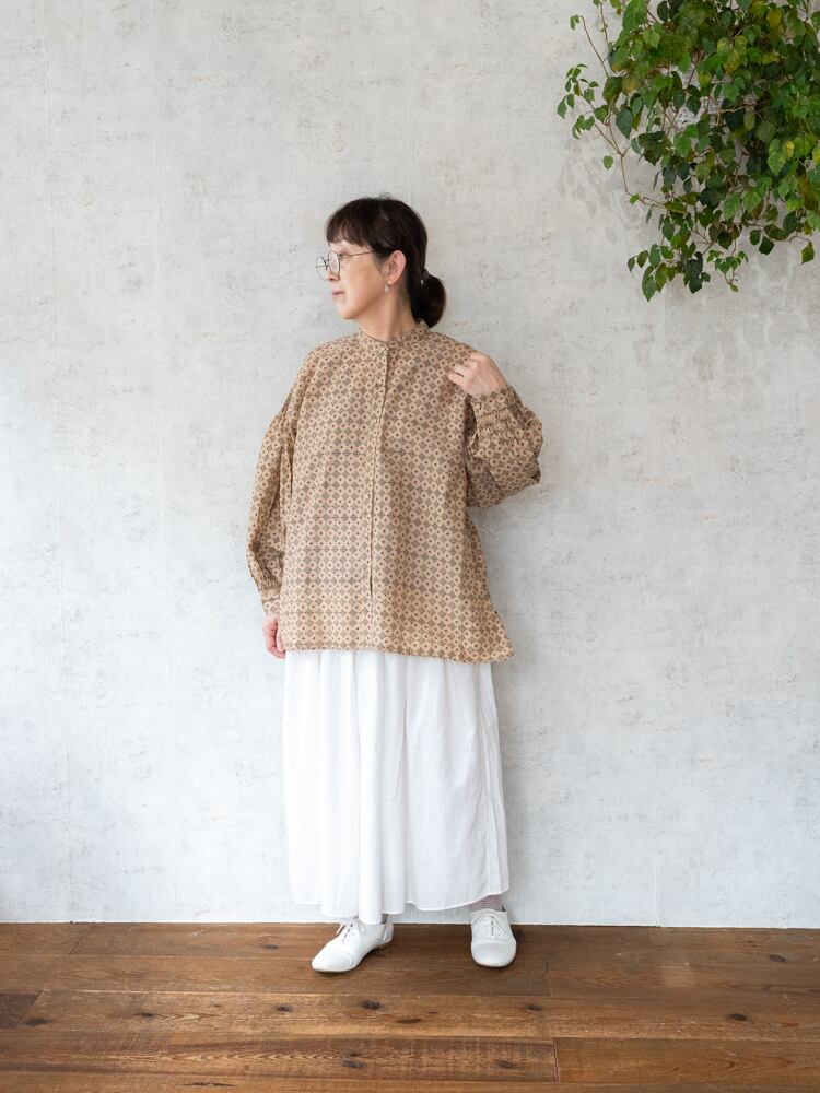 手紡ぎ手織りのカディコットンのツイル生地を使用したしっかりとした打ち込みながら柔らかな風合いに仕上がったキュロット。