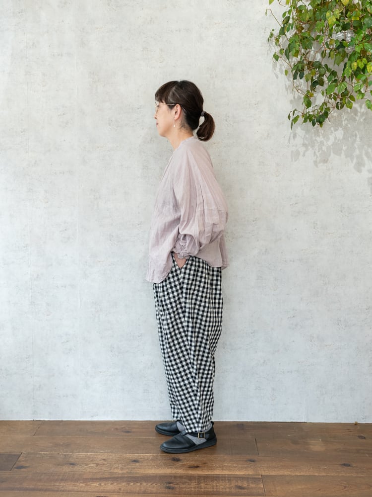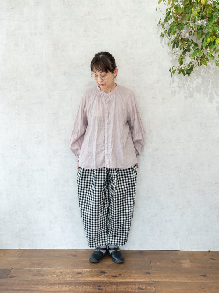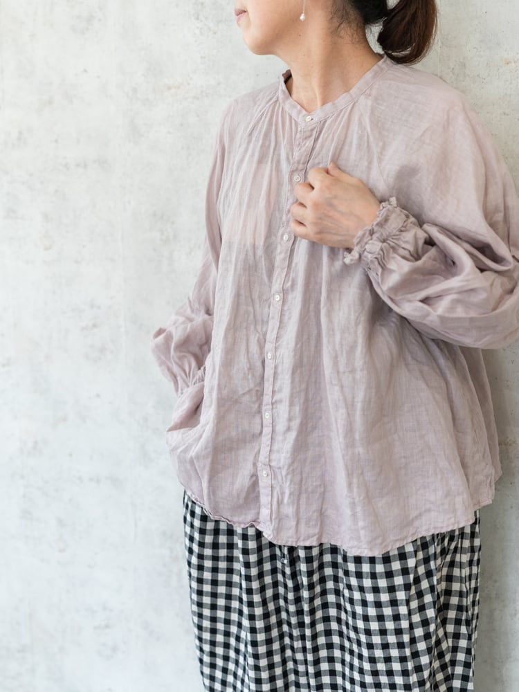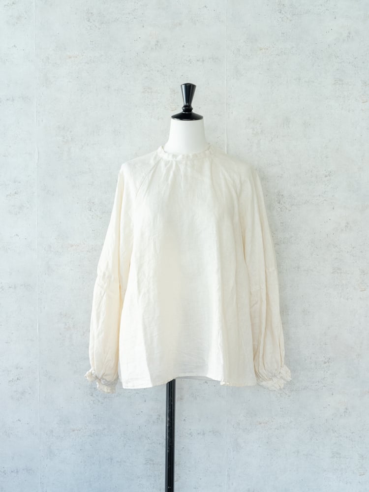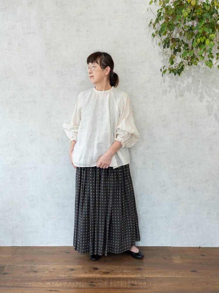 たっぷりとギャザーを寄せた袖は袖口がゴム入りで捲り上げる事でボリュームに変化が出ていろんな表情に。
