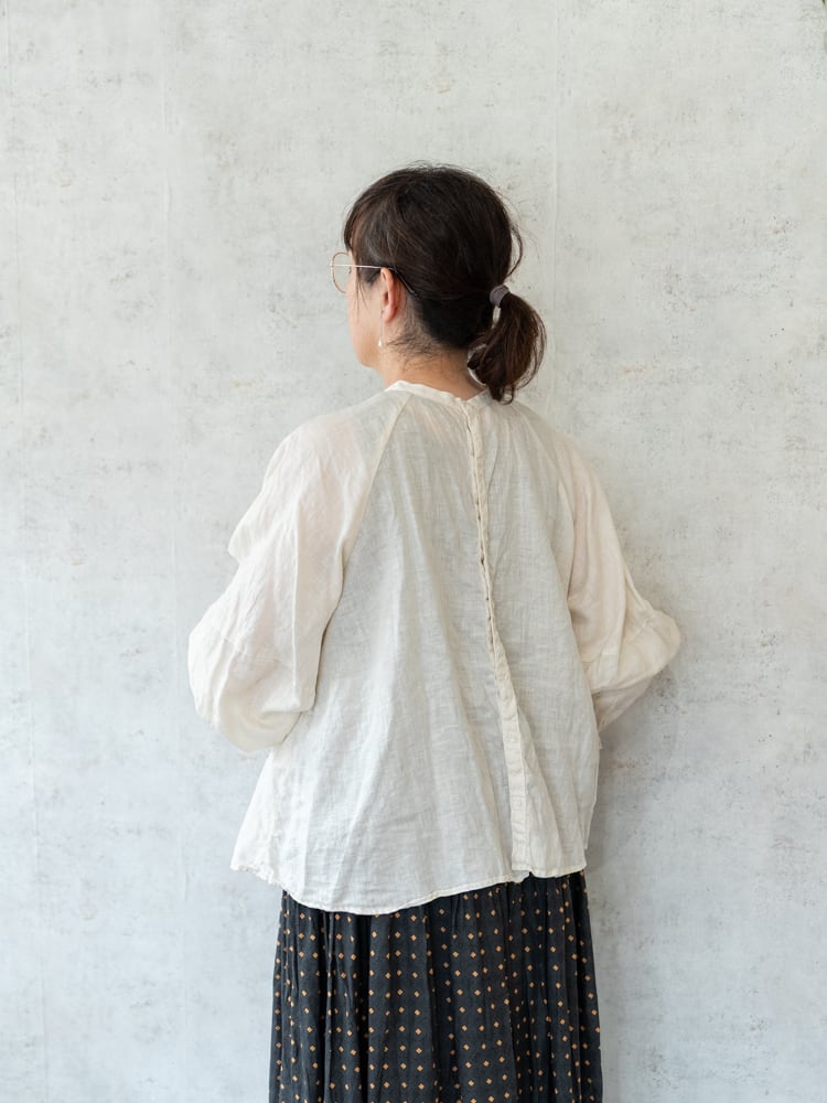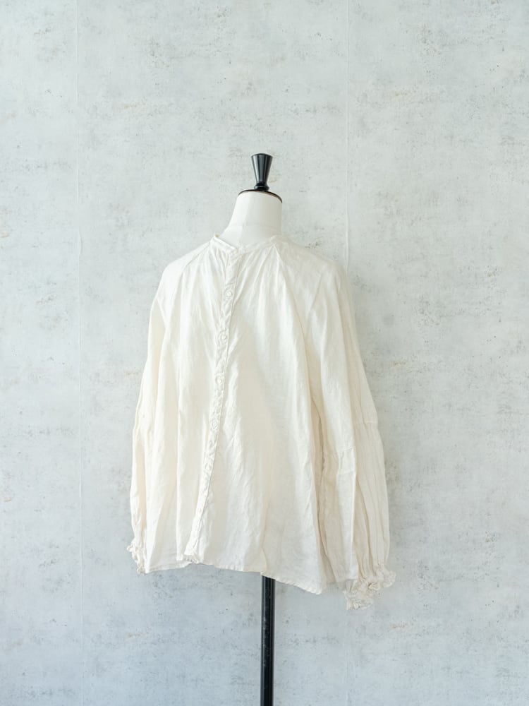 フランスのアトリエに佇む画家が着ている絵具の付いたよう古いブラウスをイメージしたスモックブラウス。