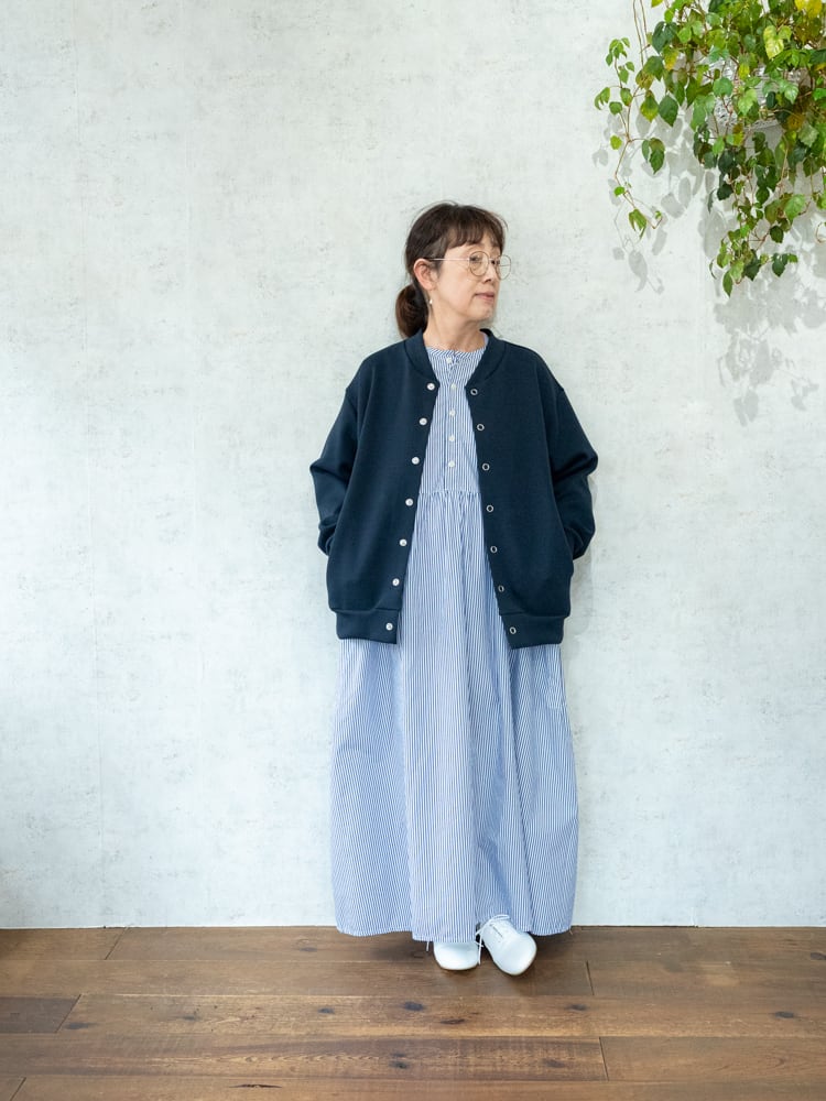 さりげない光沢感に程よいゆとりのあるシルエットはラフに羽織ったり、ボタンをとめてプルオーバーように着ても素敵です。