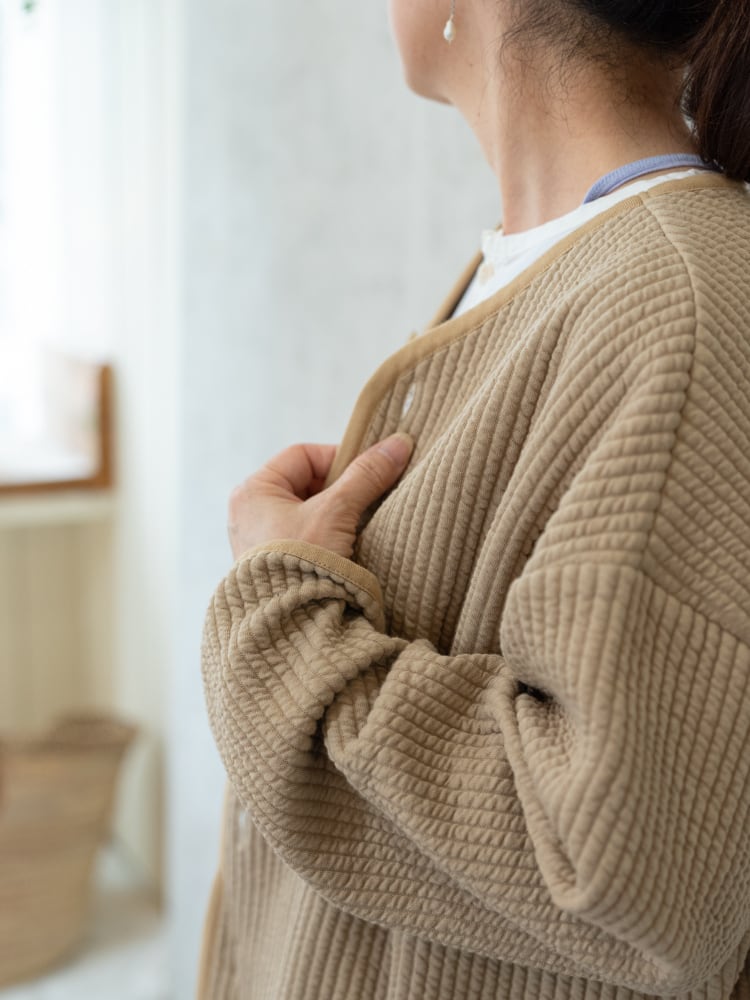 カジュアル感を抑えたタテ縞模様のキルティングで上品な着こなしにも合わせやすいです。