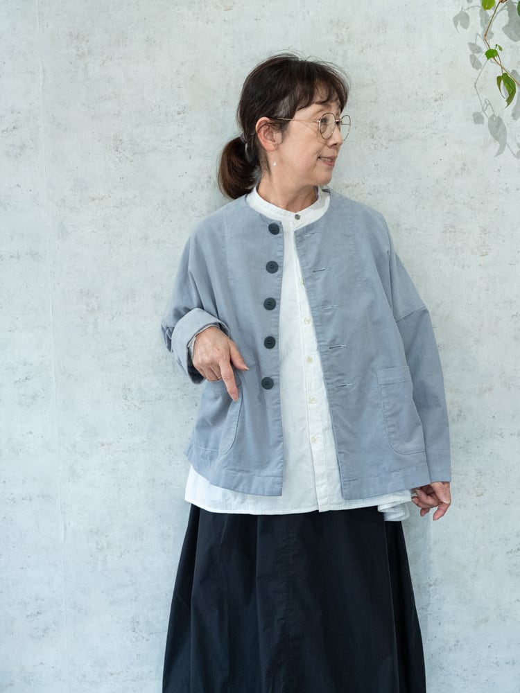 ドロップショルダーのゆったりとしたワイドシルエットにコーデュロイの温かみのある柔らかな雰囲気がとてもよくマッチしたジャケット。
