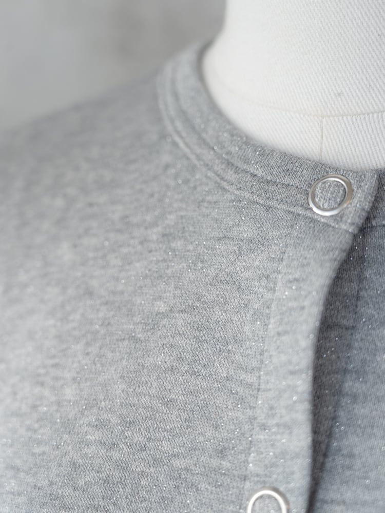 丁寧にコーミングされた先糸に程よいラメ糸がアクセントな裏毛生地を使用したスナップボタ