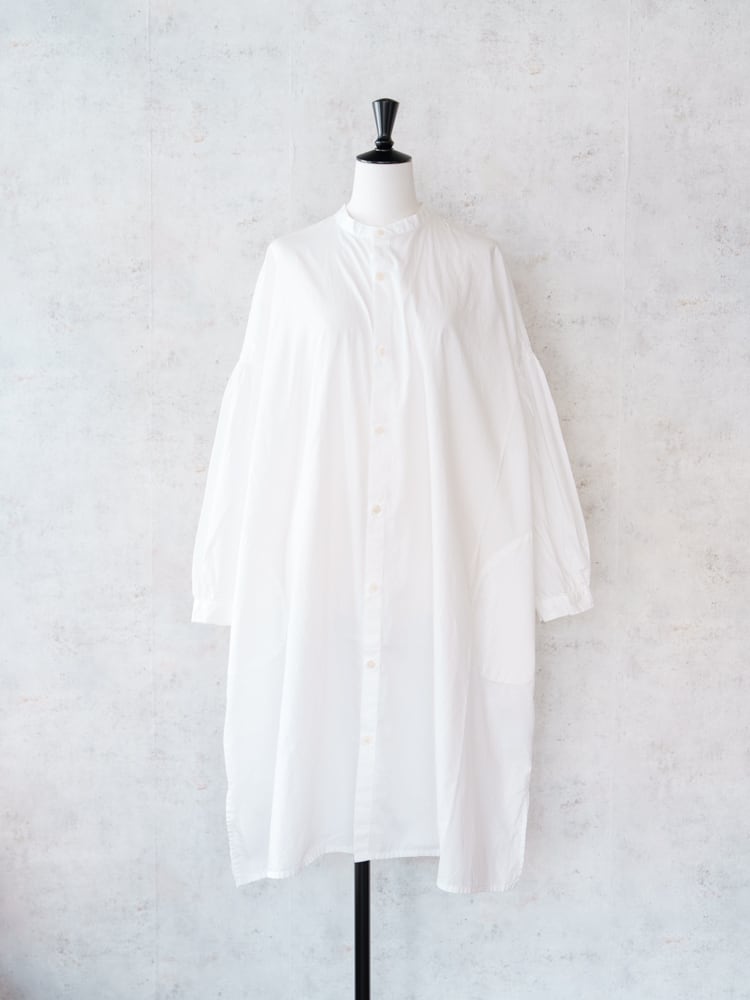 grin定番の糸ムラ感の少ないサラッと滑らかなコットンブロード素材のロングシャツ。