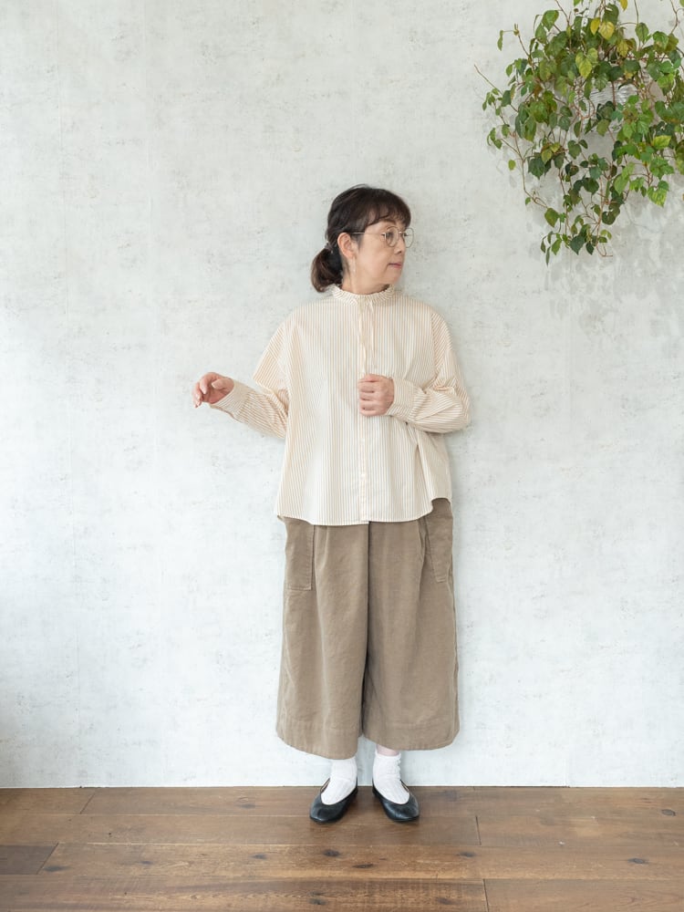 カジュアルになり過ぎない細めの畝のコーデュロイ素材のゆるっとしたリラックス感たっぷりなパンツです。