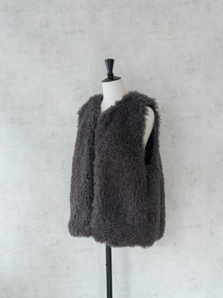 上質な肌触りとカーリーな毛足が魅力のシーズンライクなファーベスト。
