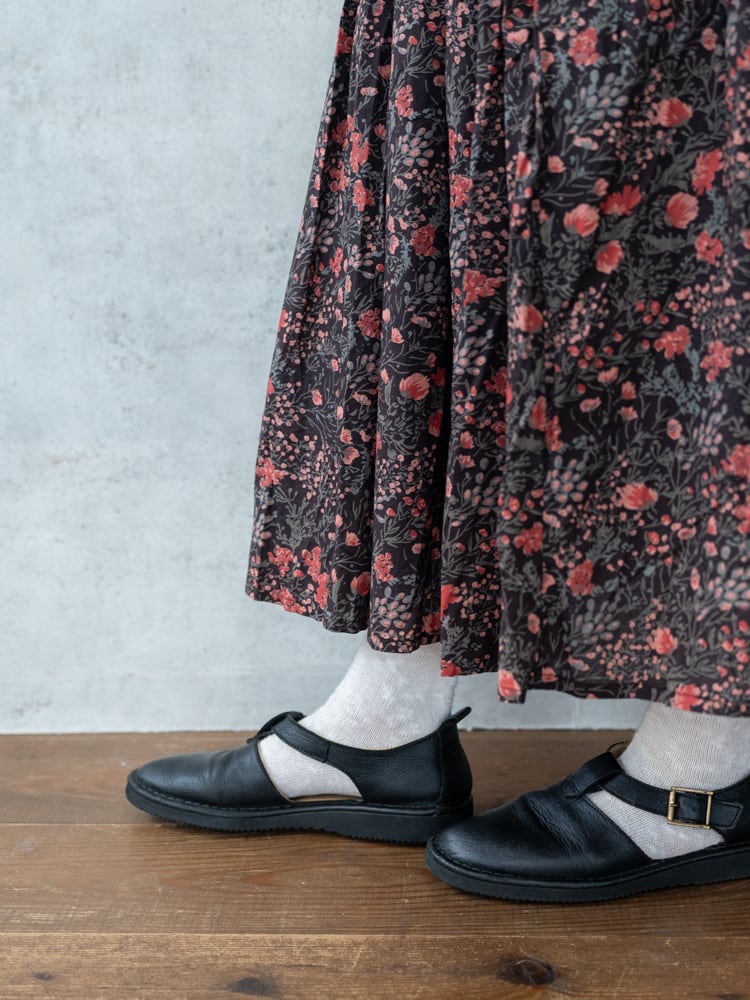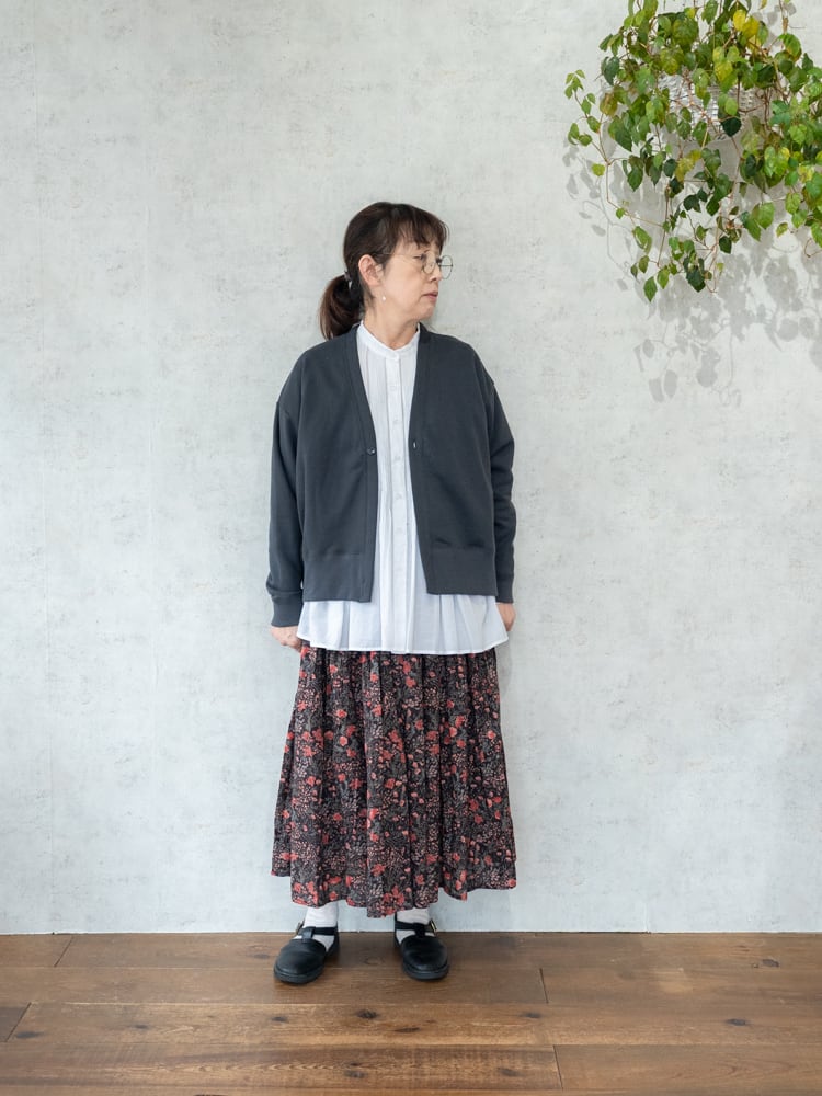 SOIL定番のクラシカルなテイストのフラワープリントが甘さを抑えた大人のかわいらしさを引き立ててくれるスカート。