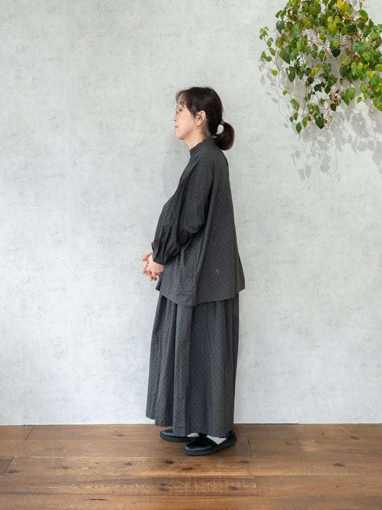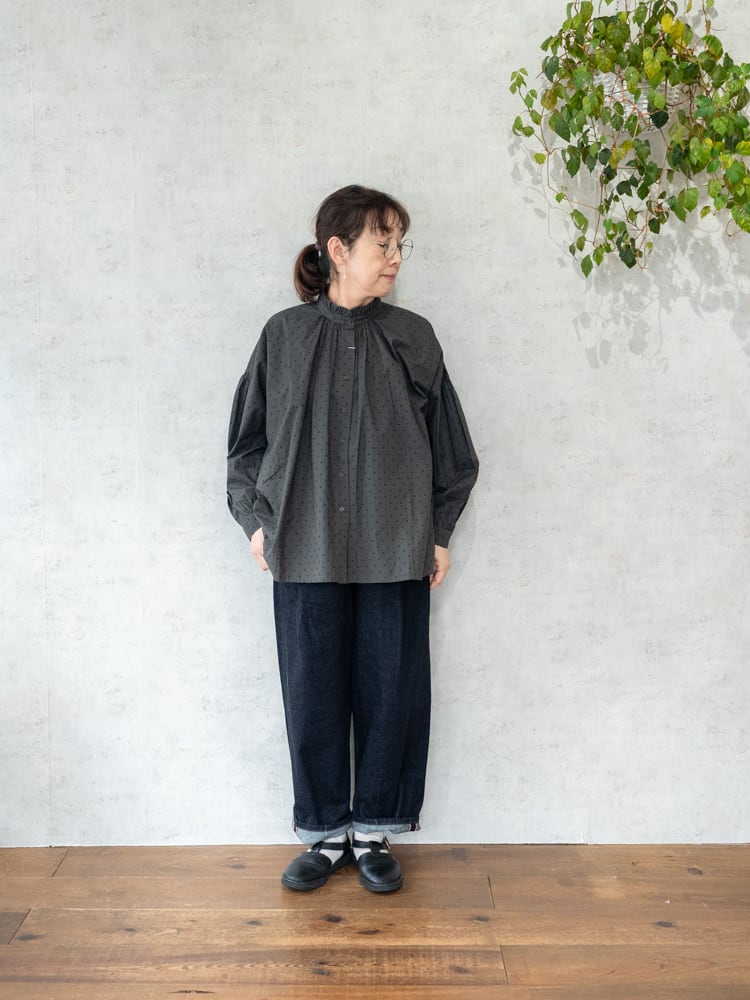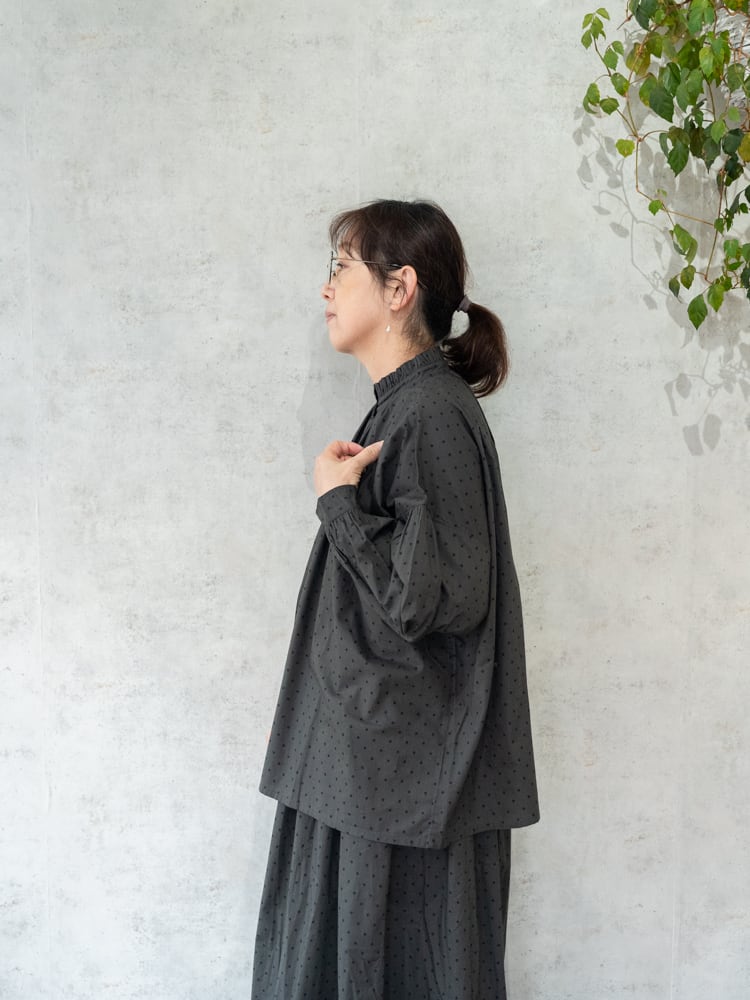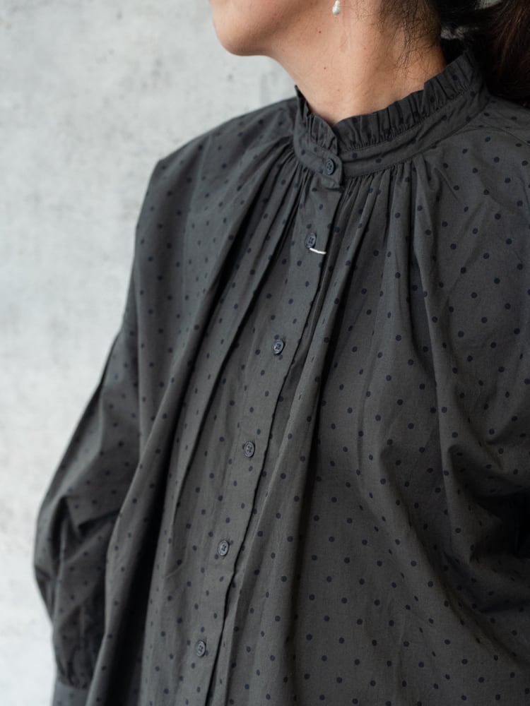 [SOIL] ポプリンドットプリントフリルカラーシャツ