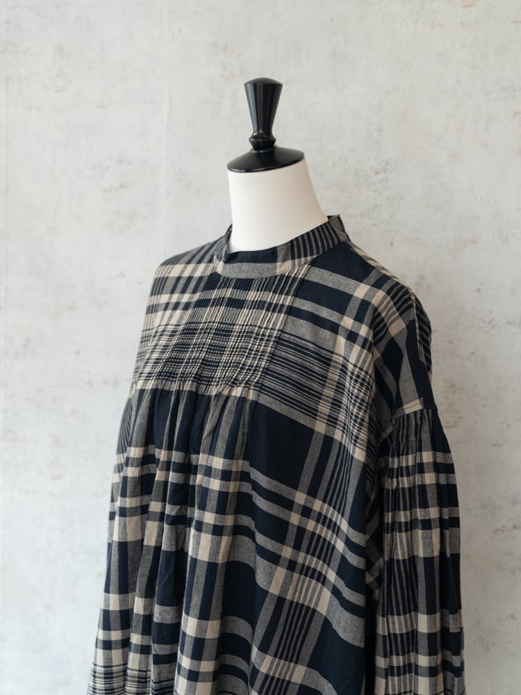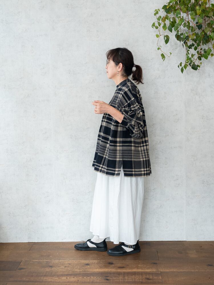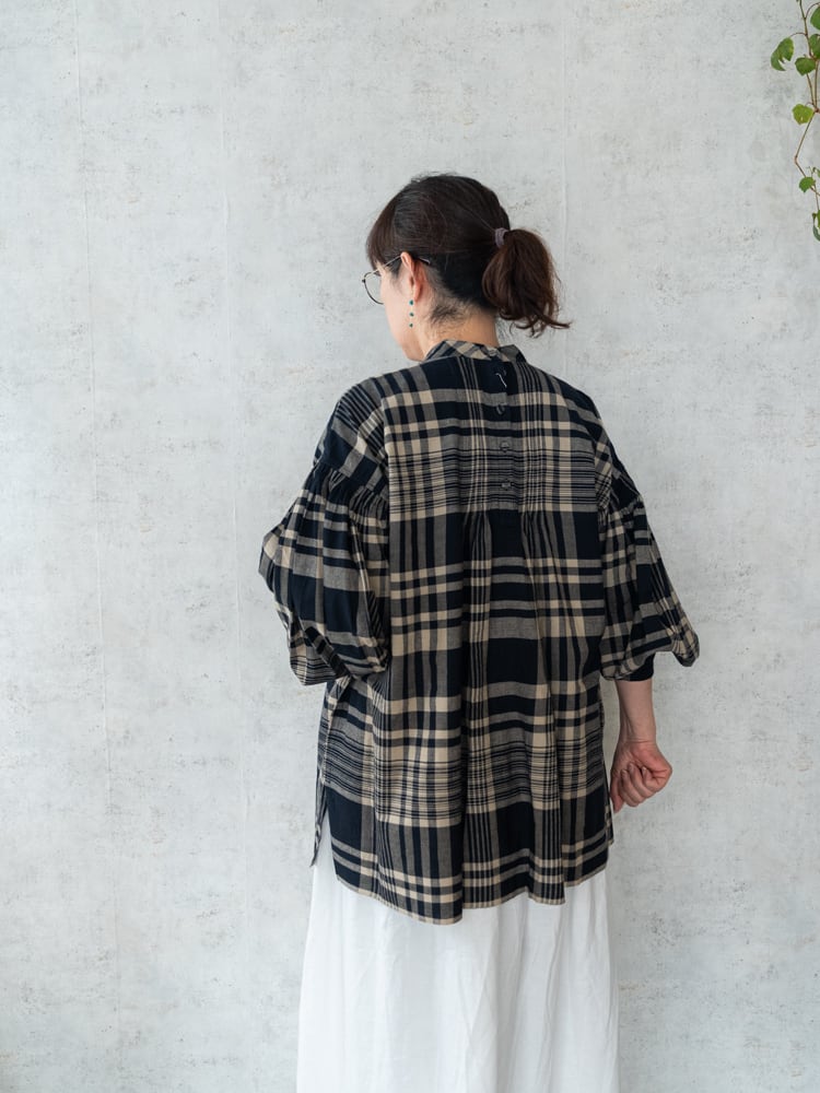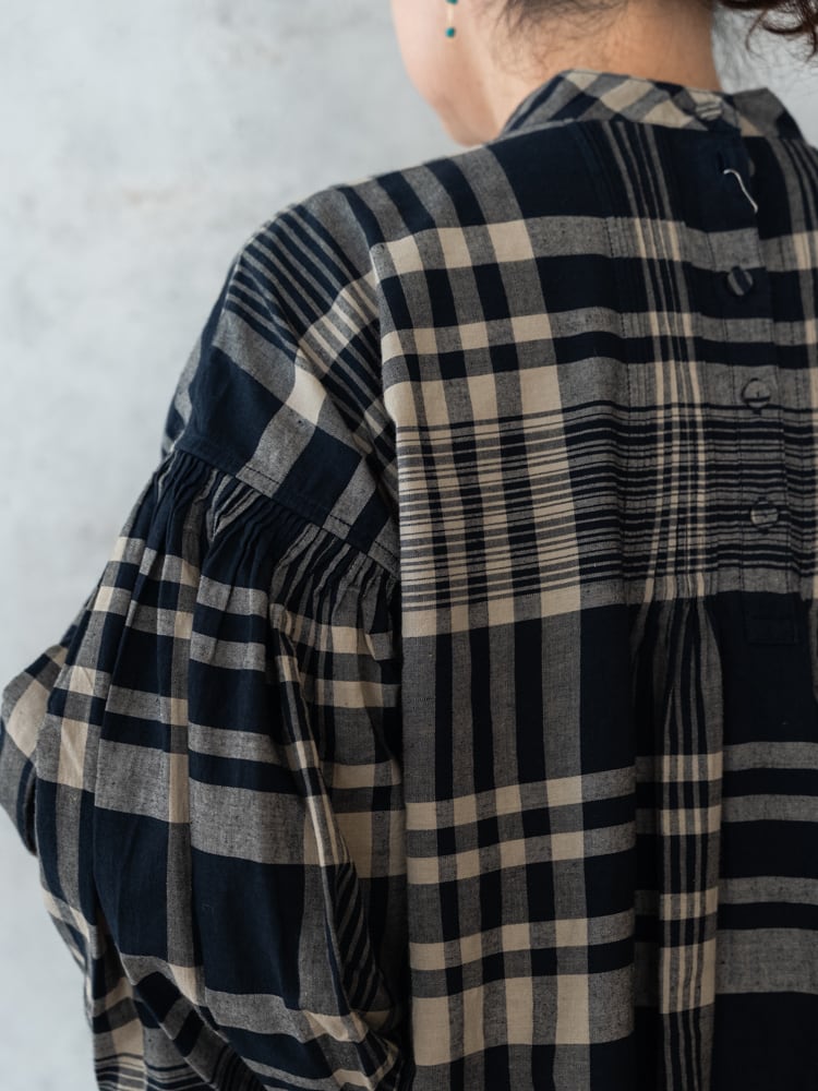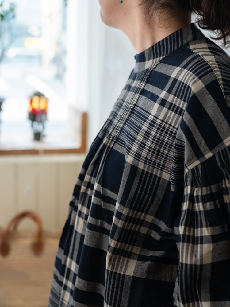 [maison de soil] ヘビーコットンチェックバックオープンミニピンタックシャツ
