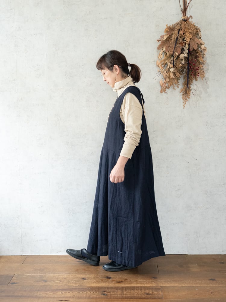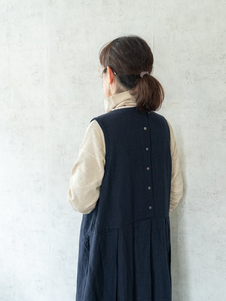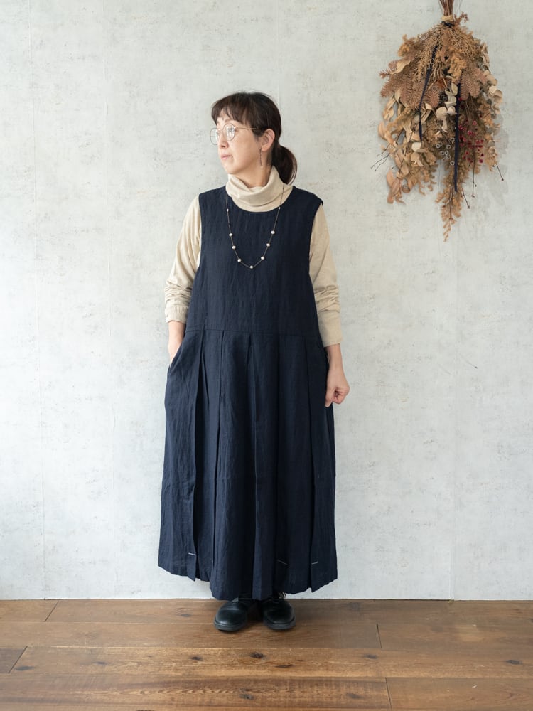 [SOIL] ウールリネンプリーツノースリーブドレス