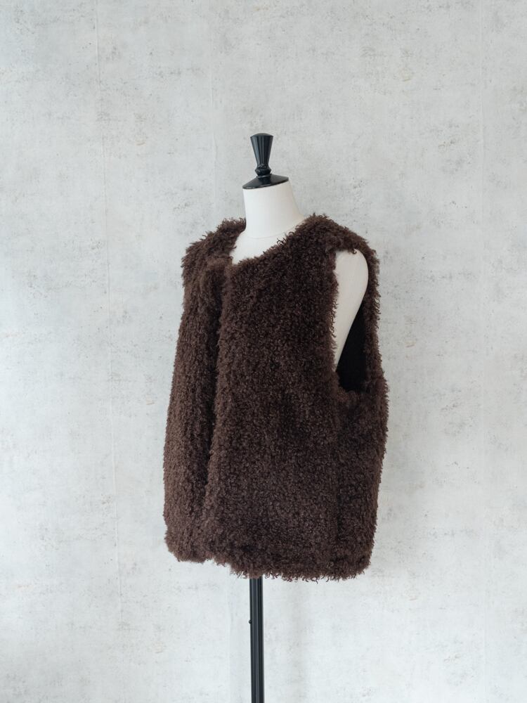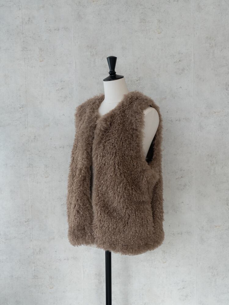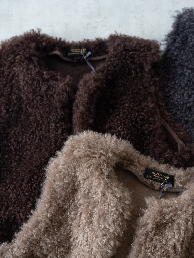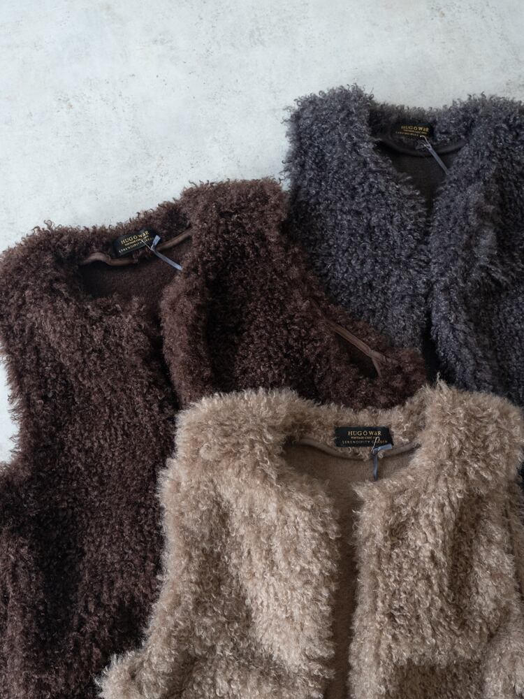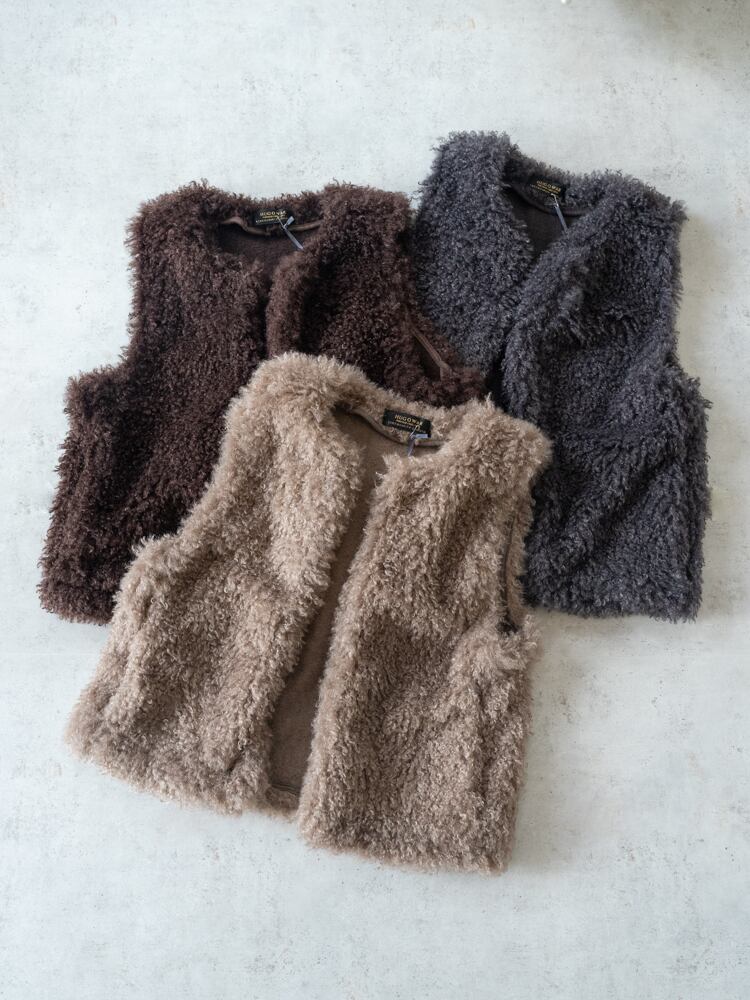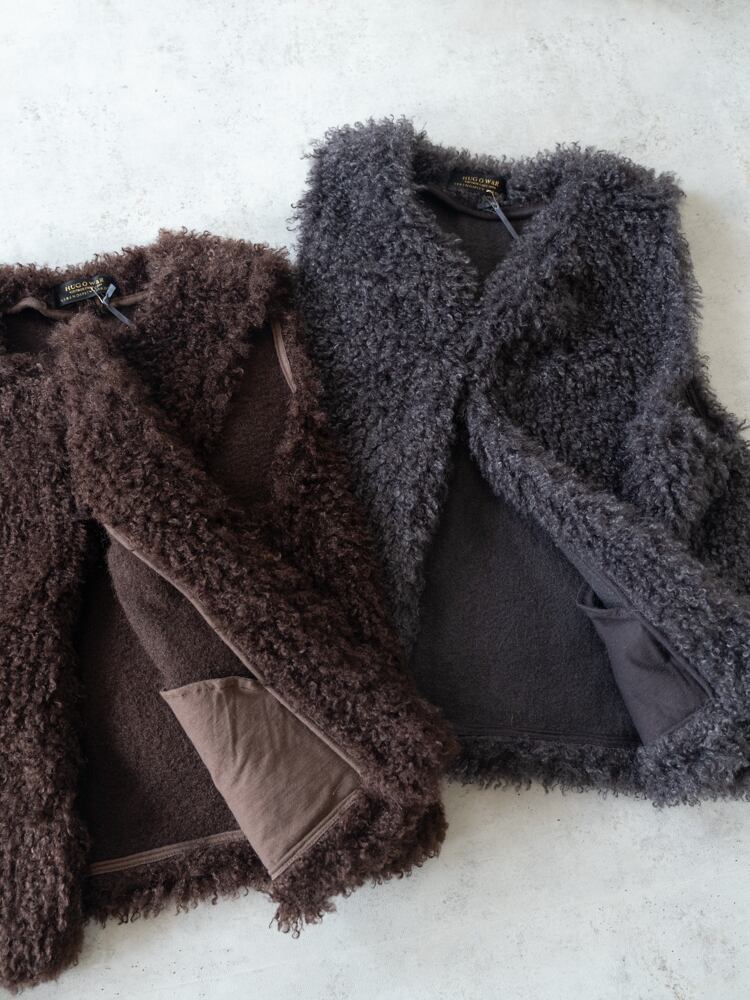 再入荷しました。上質な肌触りとカーリーな毛足が魅力のシーズンライクなファーベスト。