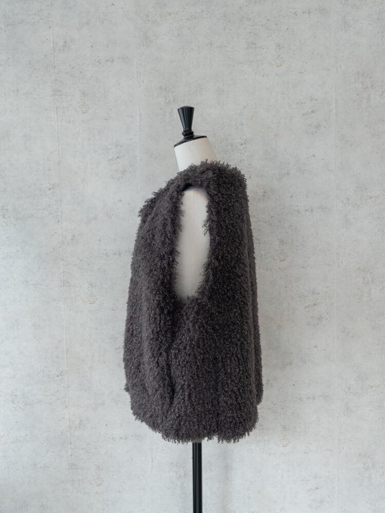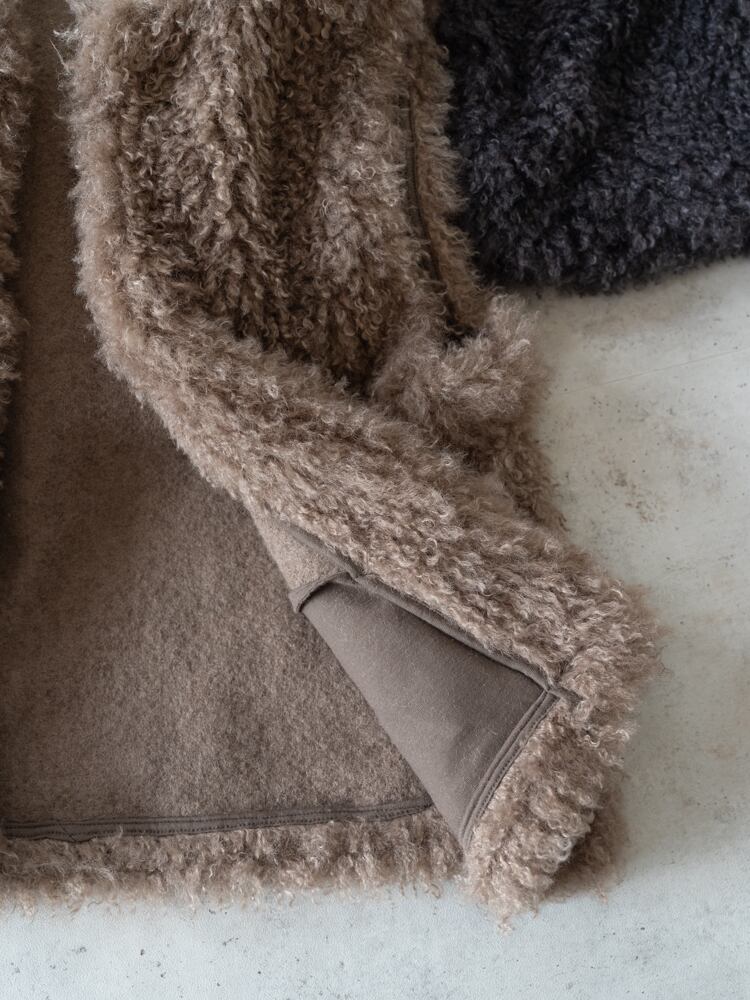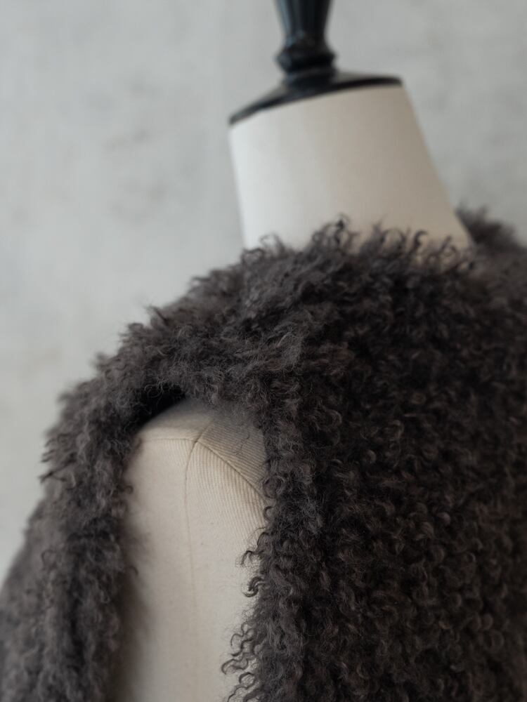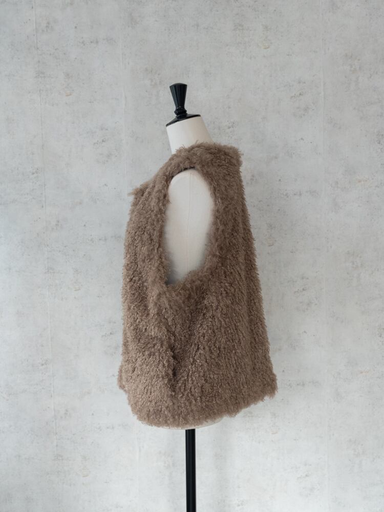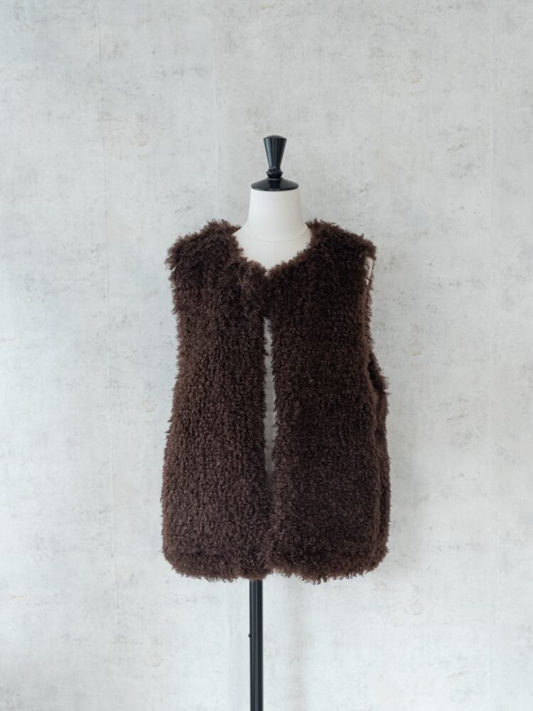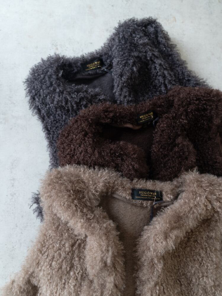 再入荷しました。上質な肌触りとカーリーな毛足が魅力のシーズンライクなファーベスト。