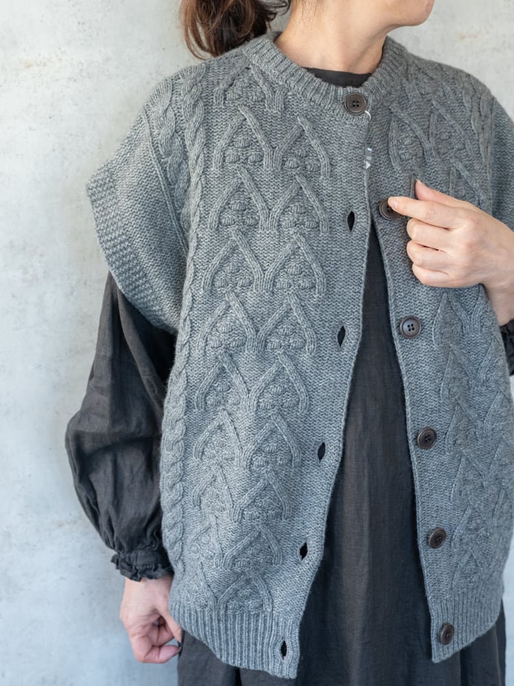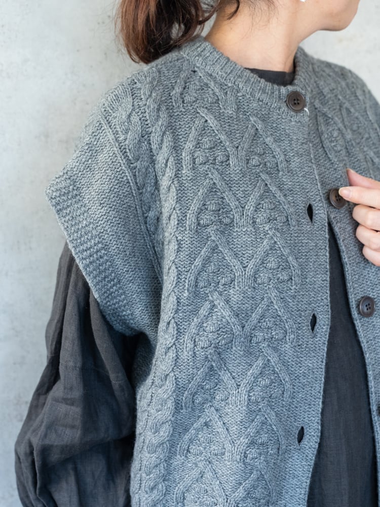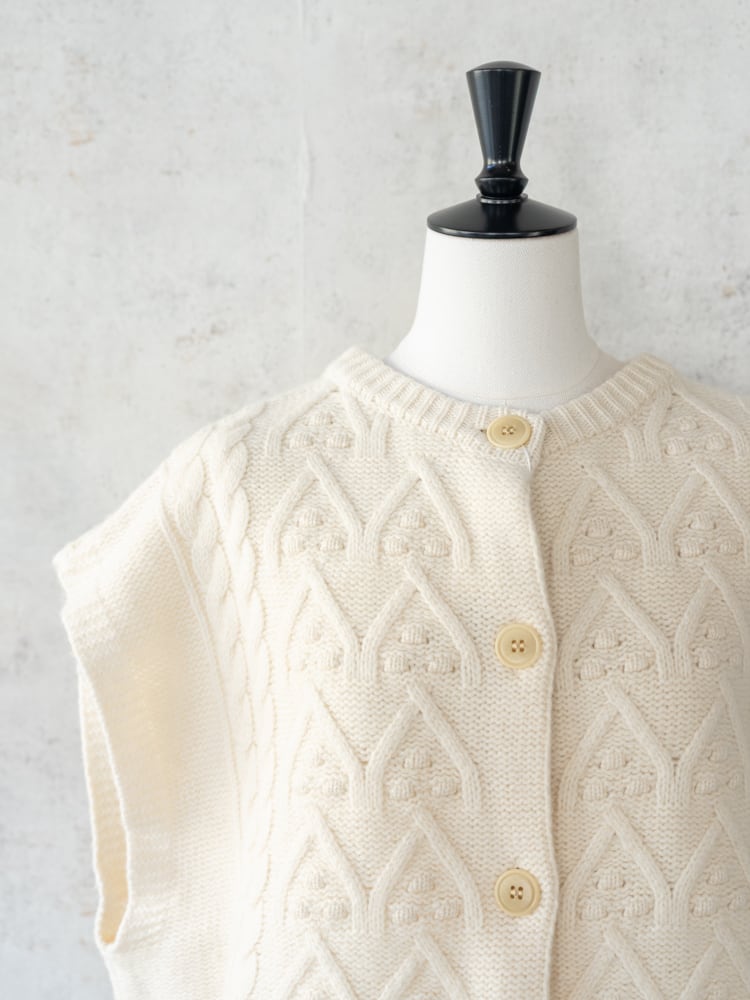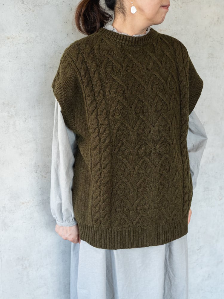 ヴィンテージのアランニットをモチーフにラボレイトリーらしく仕上げた前後どちらでも着れる2WAY仕様のニットベスト。