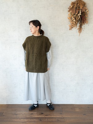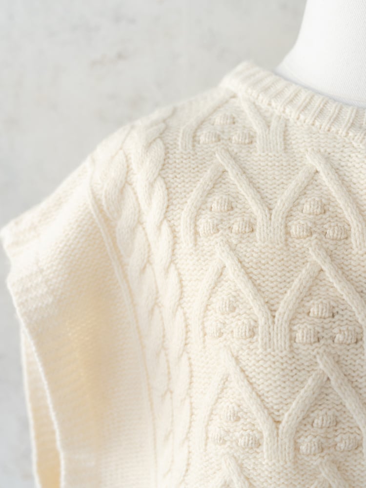どこか懐かしいようなクラシックな雰囲気の編み柄にワイドシルエットを組み合わせてコーディネートに取り入れやすいアイテムに。
