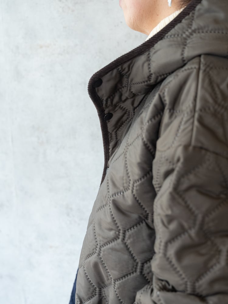 ヒートキルトは表地と裏地をステッチを使わずに、熱を加えることでボンディングしているので、糸切れの心配がないのが特徴です。表裏共にポリエステル素材を使用しているので、滑りが良く、重ね着しやすいのも嬉しいポイントです。