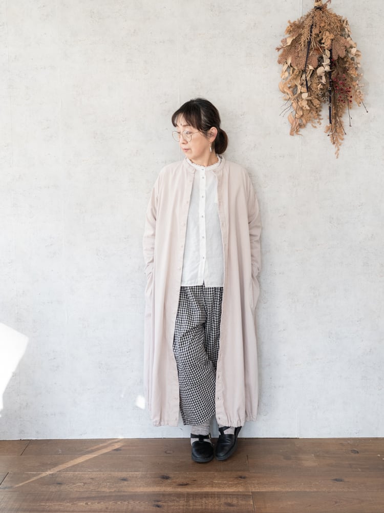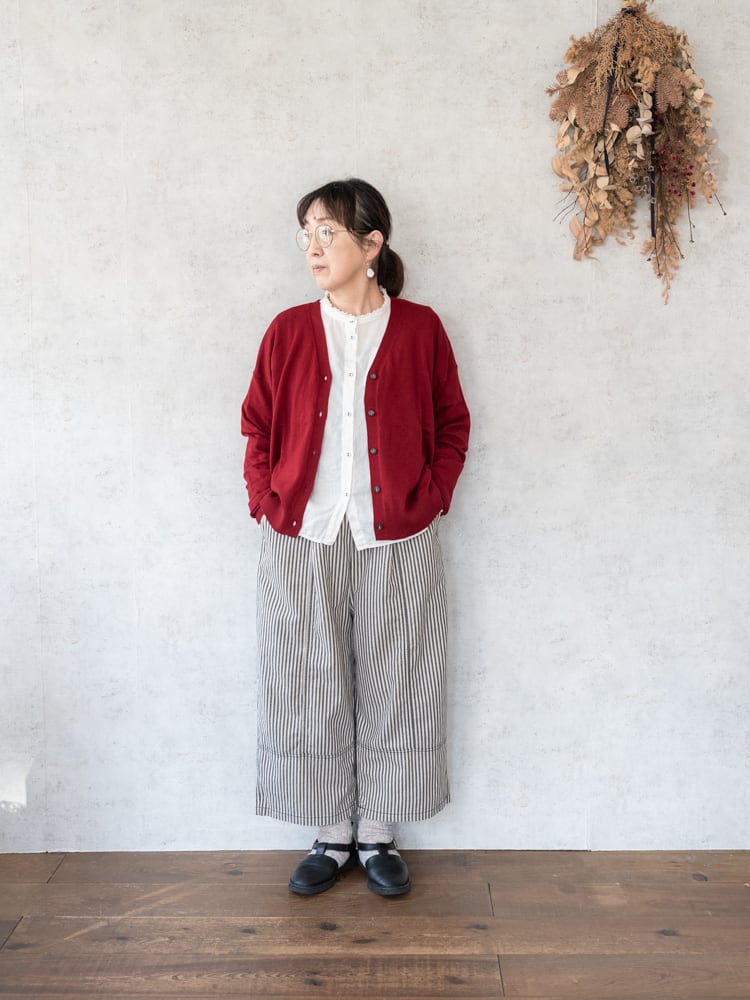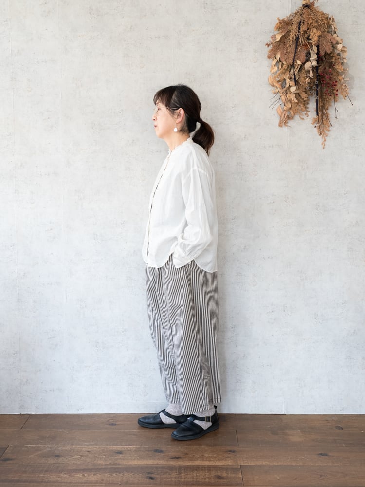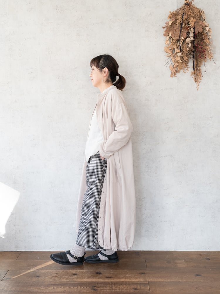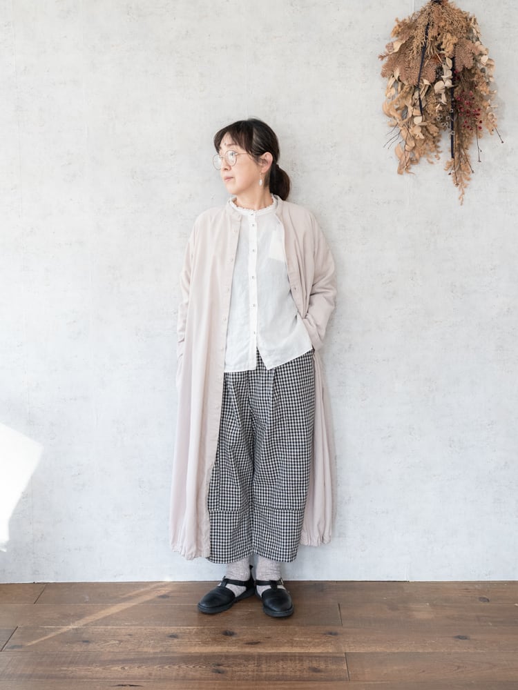 裾に向かって細くなるくるぶし丈はバランスが取りやすくデイリーに着回せる一枚です。