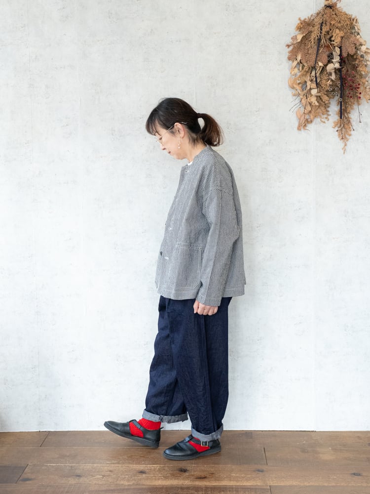 しっかりとゆとりを持たせたサイズ設定にすることでピッタリとせず、シャツやスウェットなどのインナーが着込みやすい作りになっています。