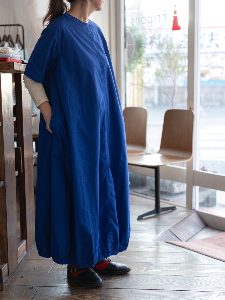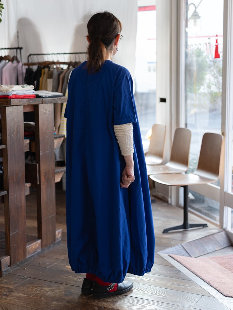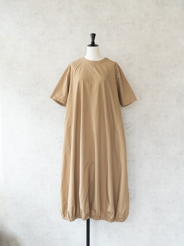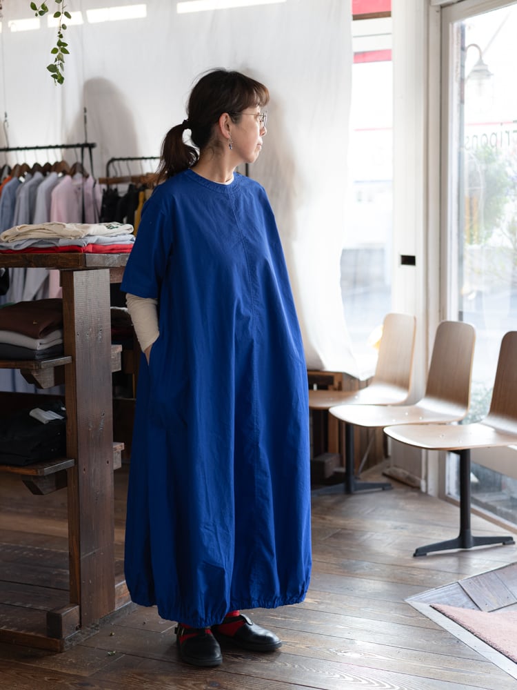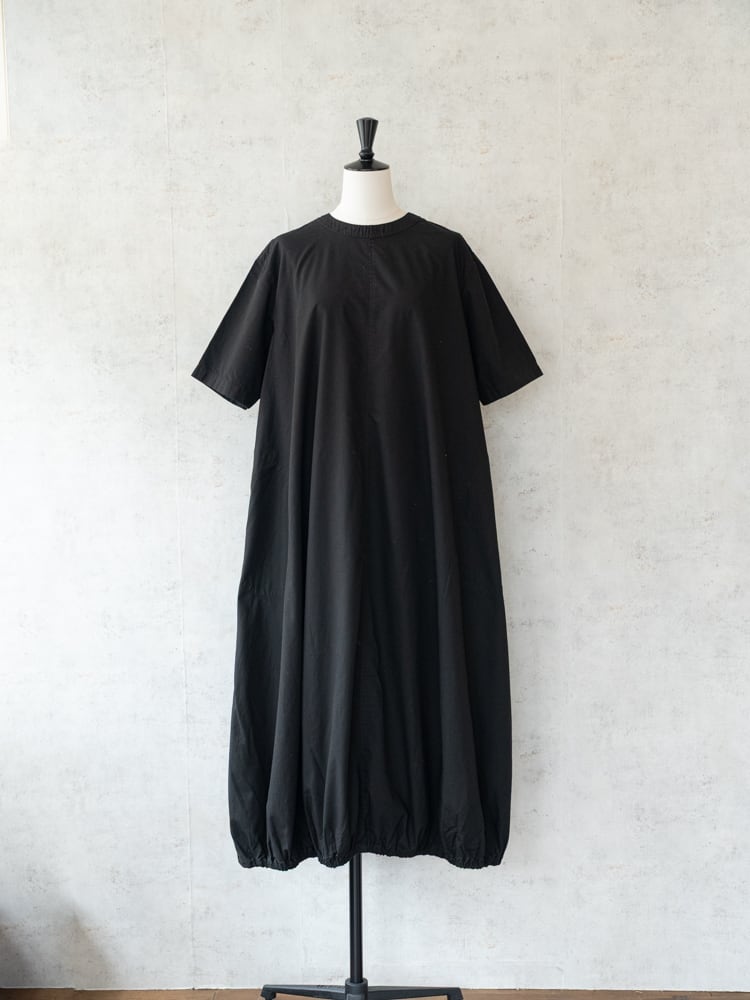 グリンらしい独特のバルーンシルエットが魅力的な染めブロードバルーン5分袖ワンピース。