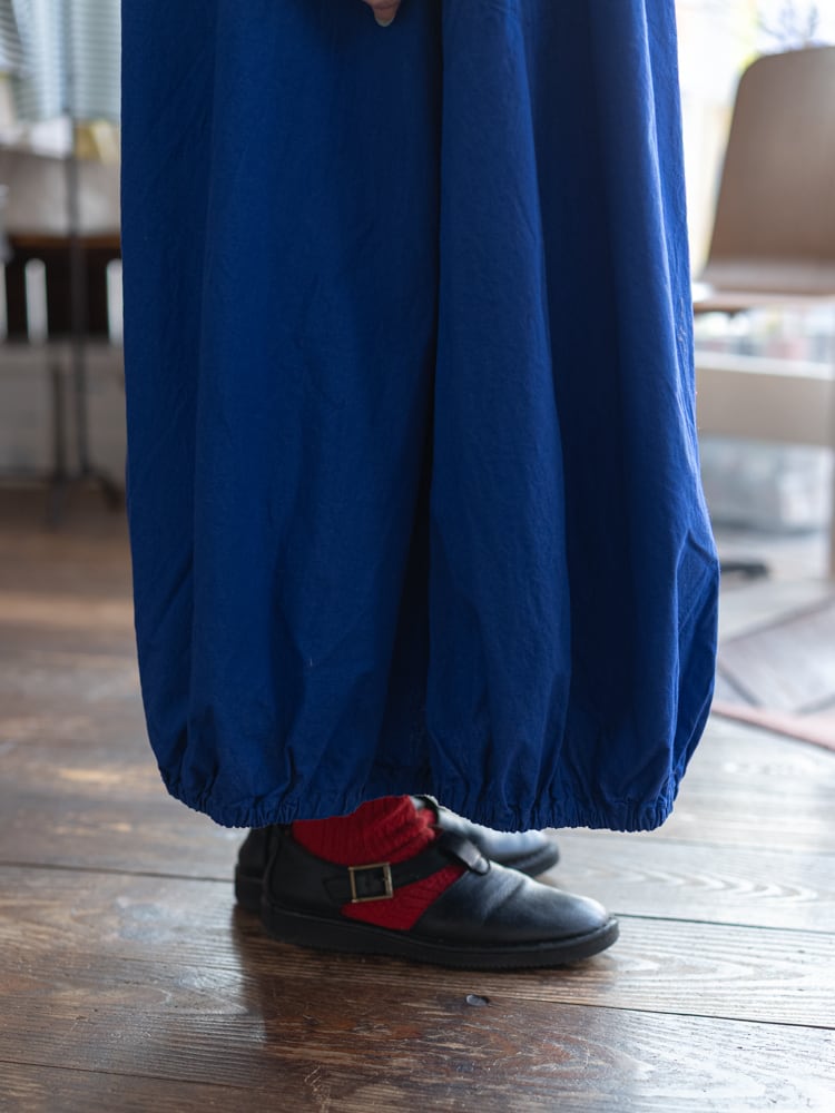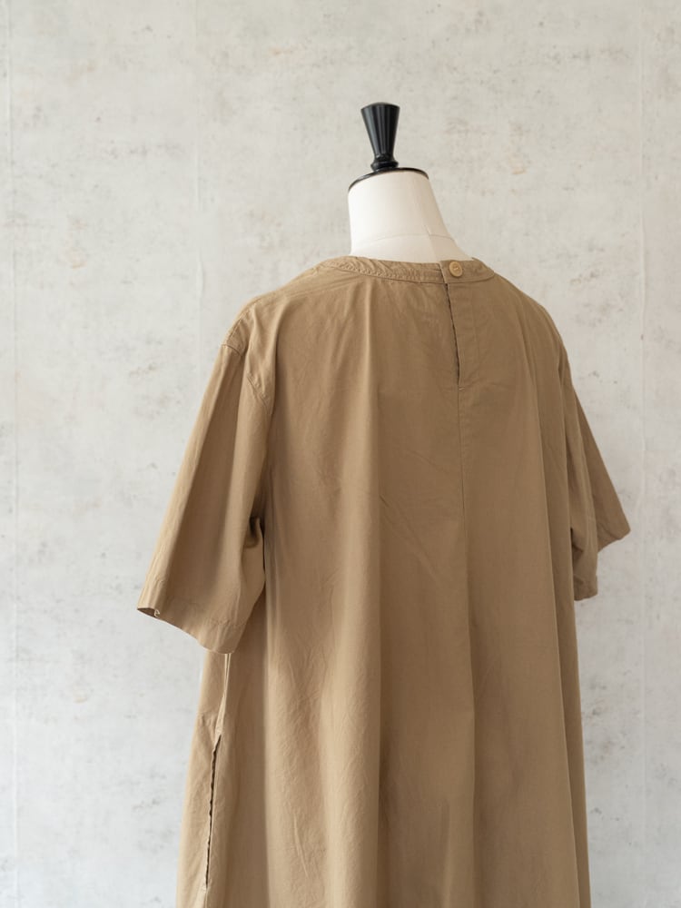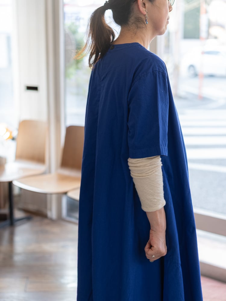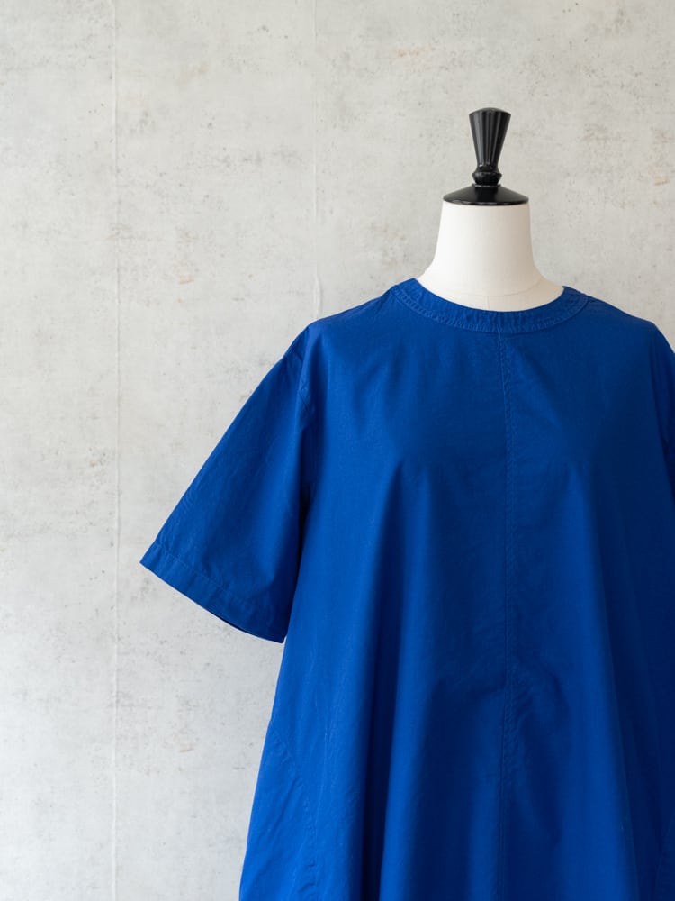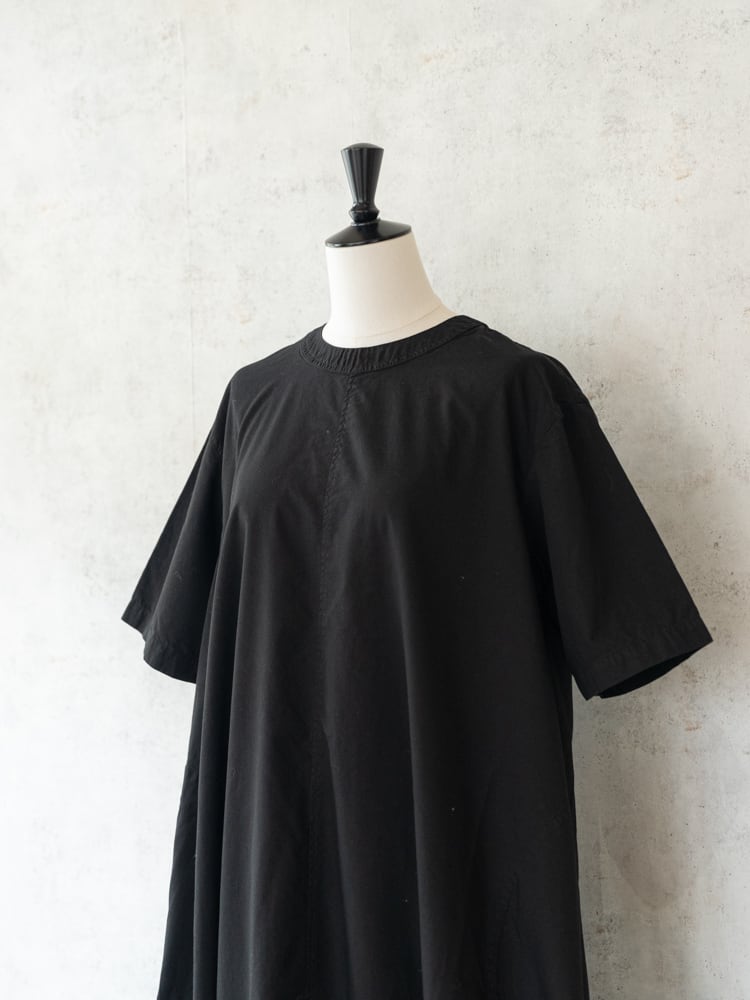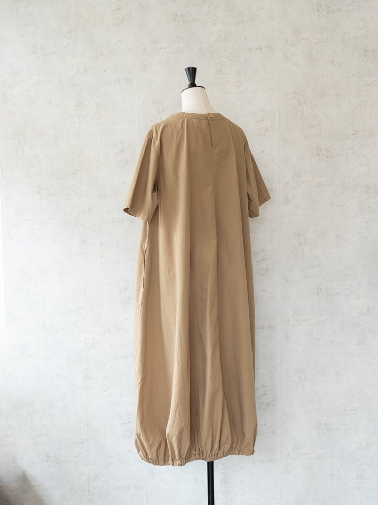 グリンらしい独特のバルーンシルエットが魅力的な染めブロードバルーン5分袖ワンピース。