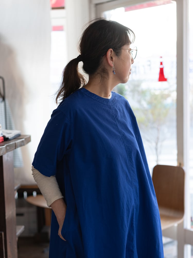 製品染めを施したブロード素材を使用しており、さらりとした肌触りと軽やかな着心地が特徴です。