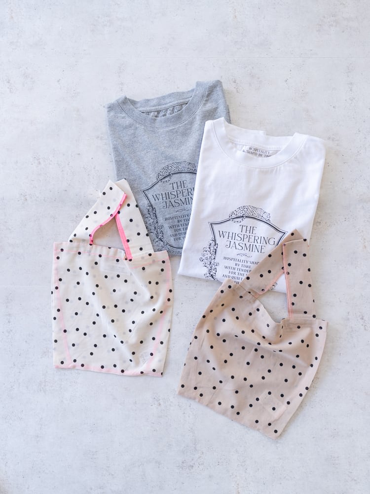 愛らしいドット柄のミニバッグがセットに、アクセントとなるステッチのカラーにもこだわりさりげない遊び心を感じさせます。