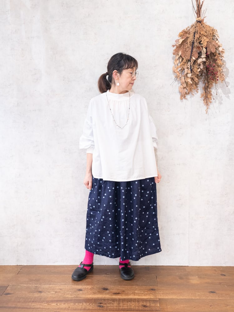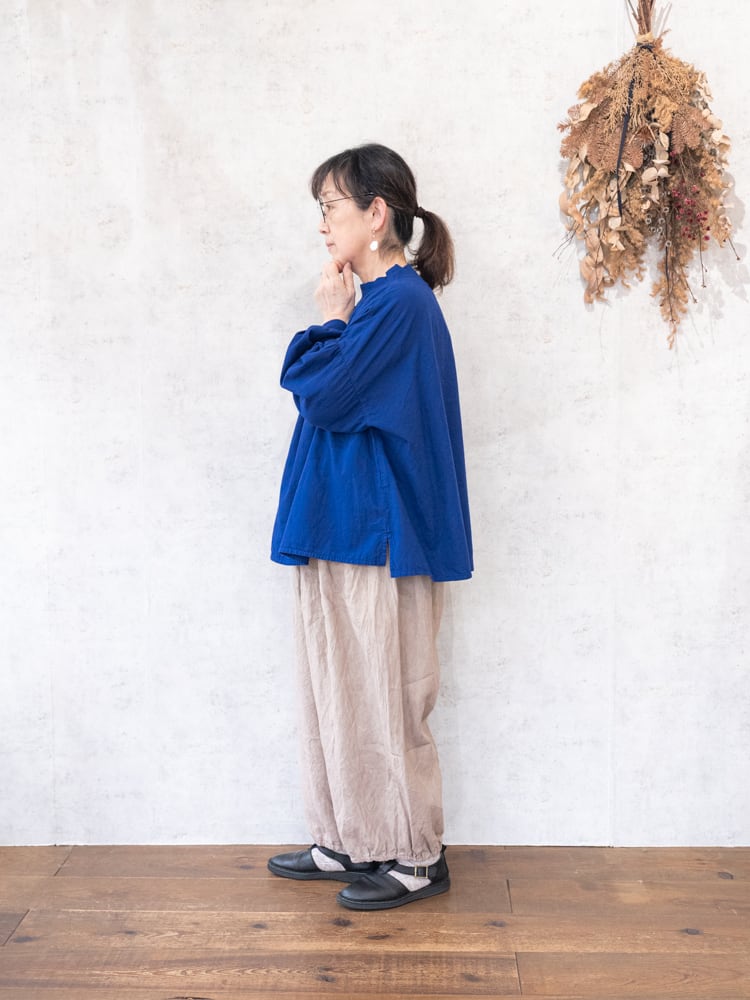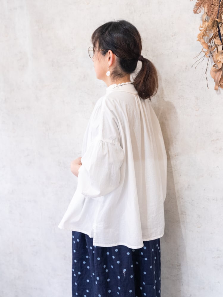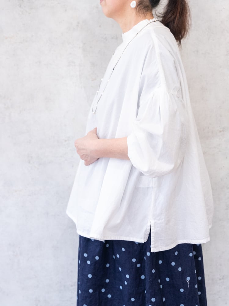 柔らかなブロード素材をたっぷりと使用したフンワリとした丸みのあるシルエットが魅力のプルオーバーです。