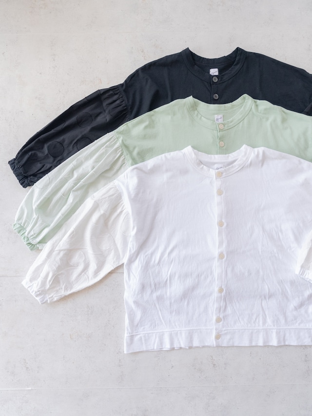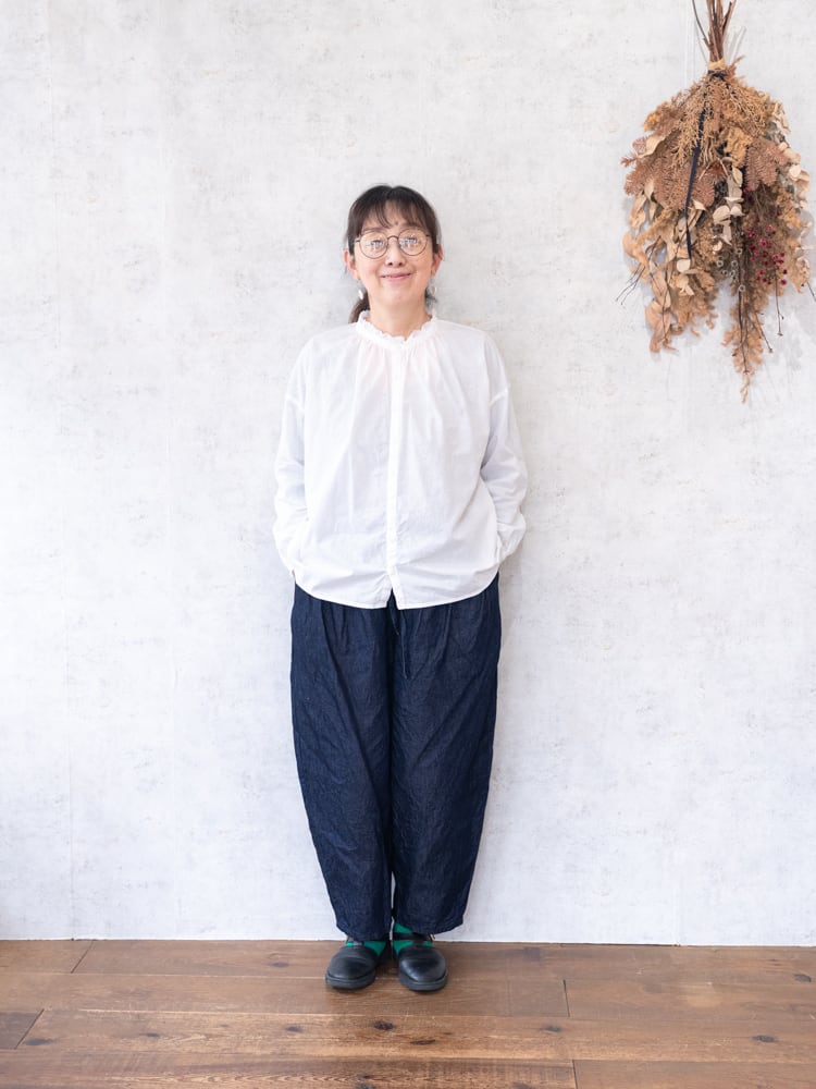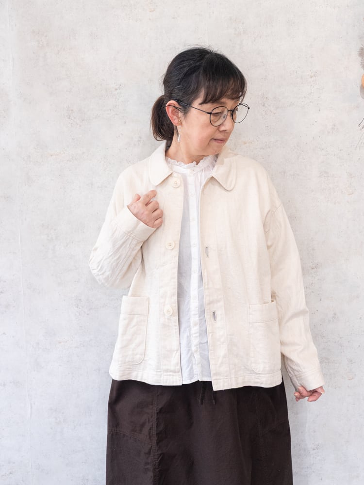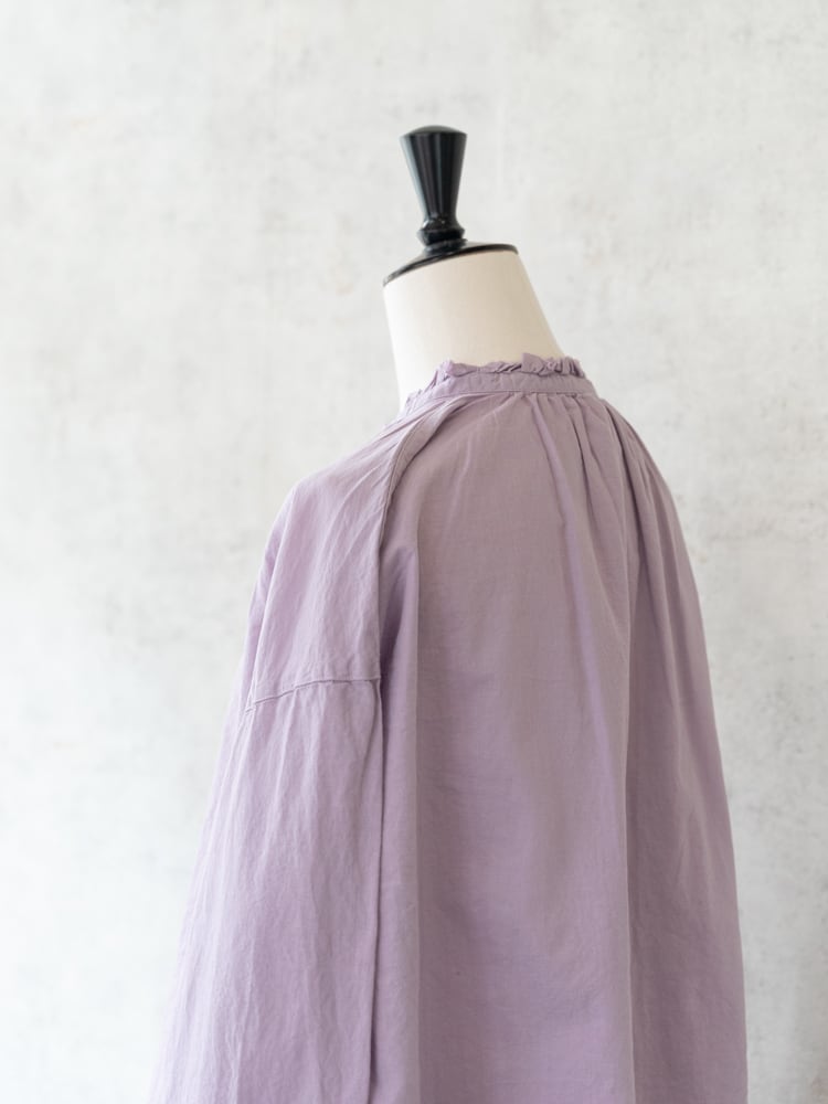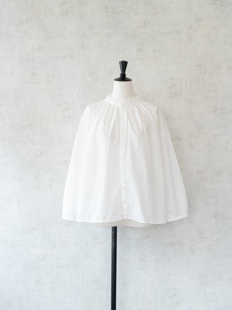 シンプルなデザインに切りっぱなしのフリル襟のデザインは重ね着にとても重宝するアイテムでフリルが顔周りを華やかに見せてくれます。