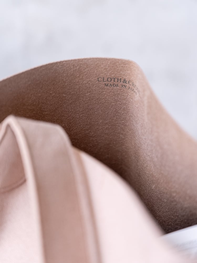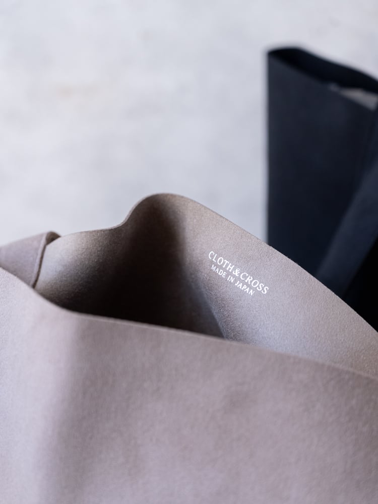 内側には、Cloth&Crossのブランドロゴを、きらりと輝く箔押しで控えめにあしらい、シンプルな中に密やかなアクセントが添えられています。