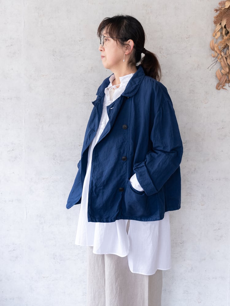 [ARMEN] リネンコットンラウンドカラーダブルジャケット