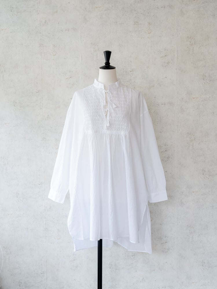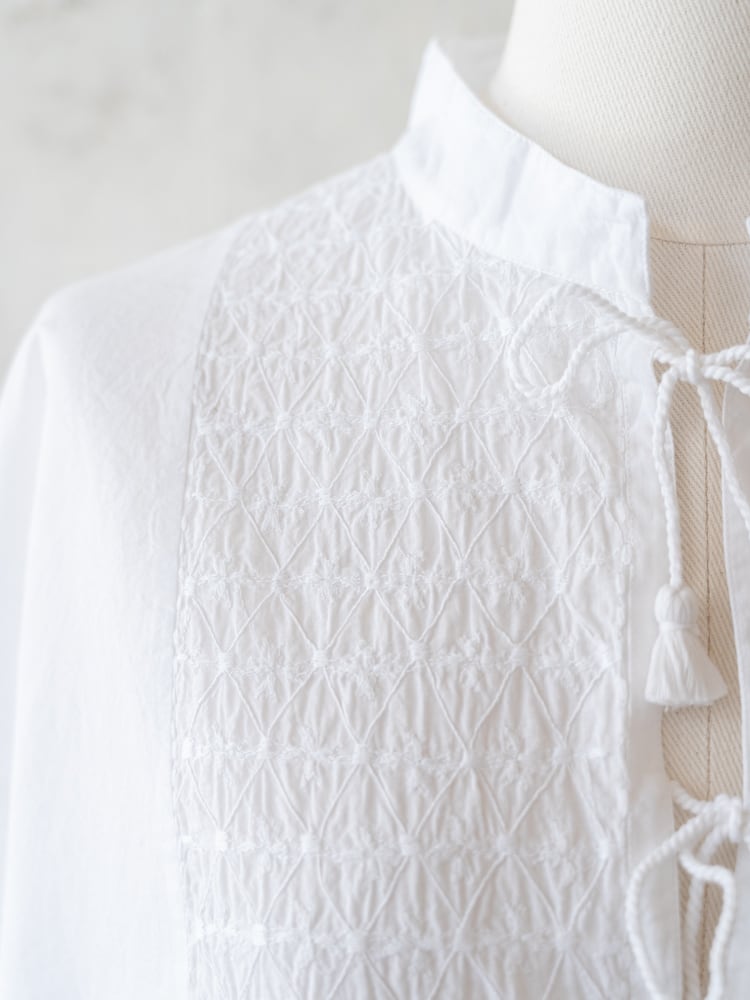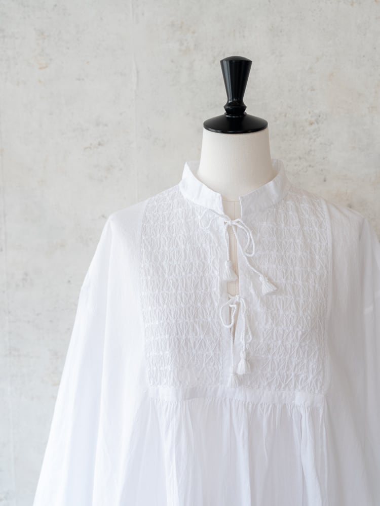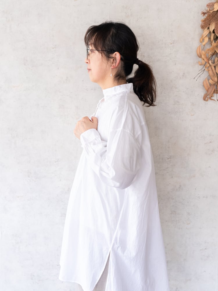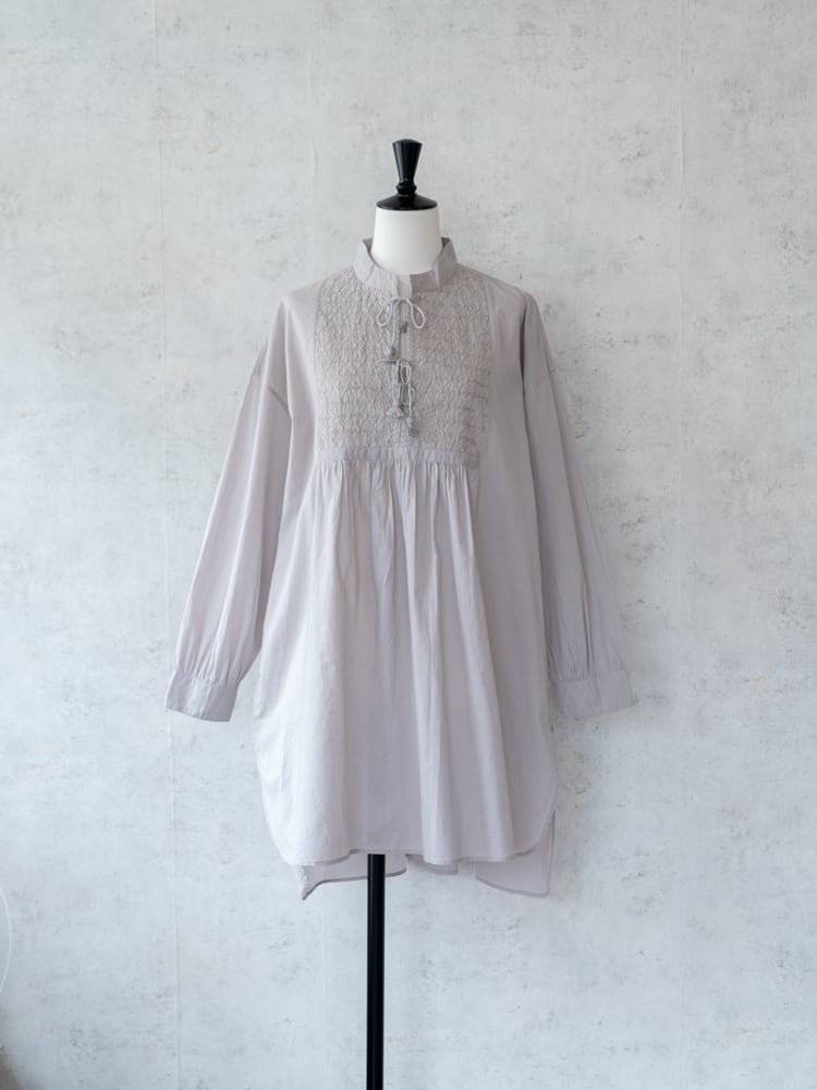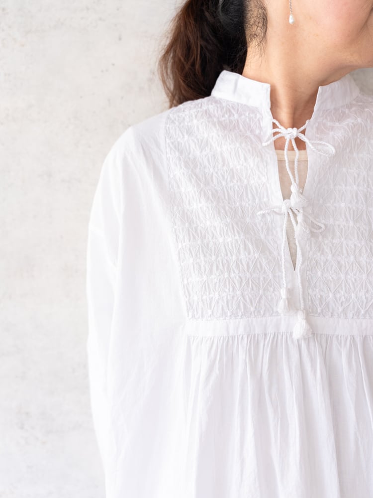 [maison de soil] オーガニックキャンブリックバンドカラーEMBチュニック