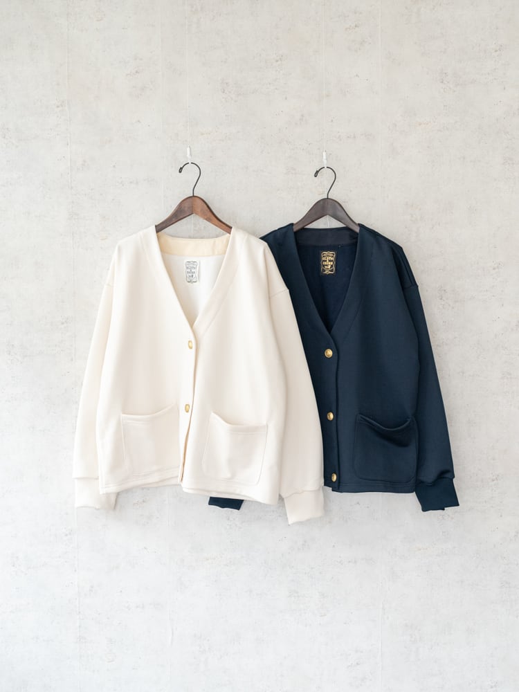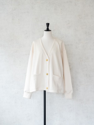 正統派のデザインにキラリと輝く、ヴォルスの金ボタンがアクセントのカットソーカーディガン。
