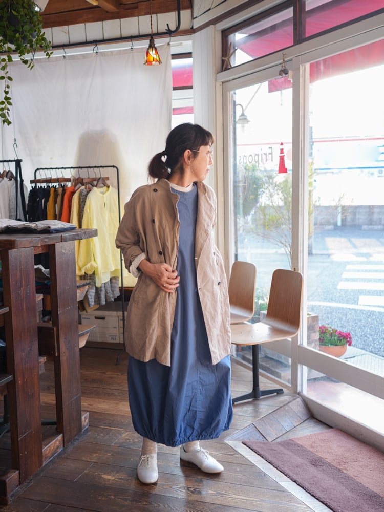 ゆとりあるシルエットは、中に厚手のアイテムも入れやすく、季節の変わり目に活躍するジャケットです。腰回りがすっぽり隠れる長めの丈も嬉しいポイント。