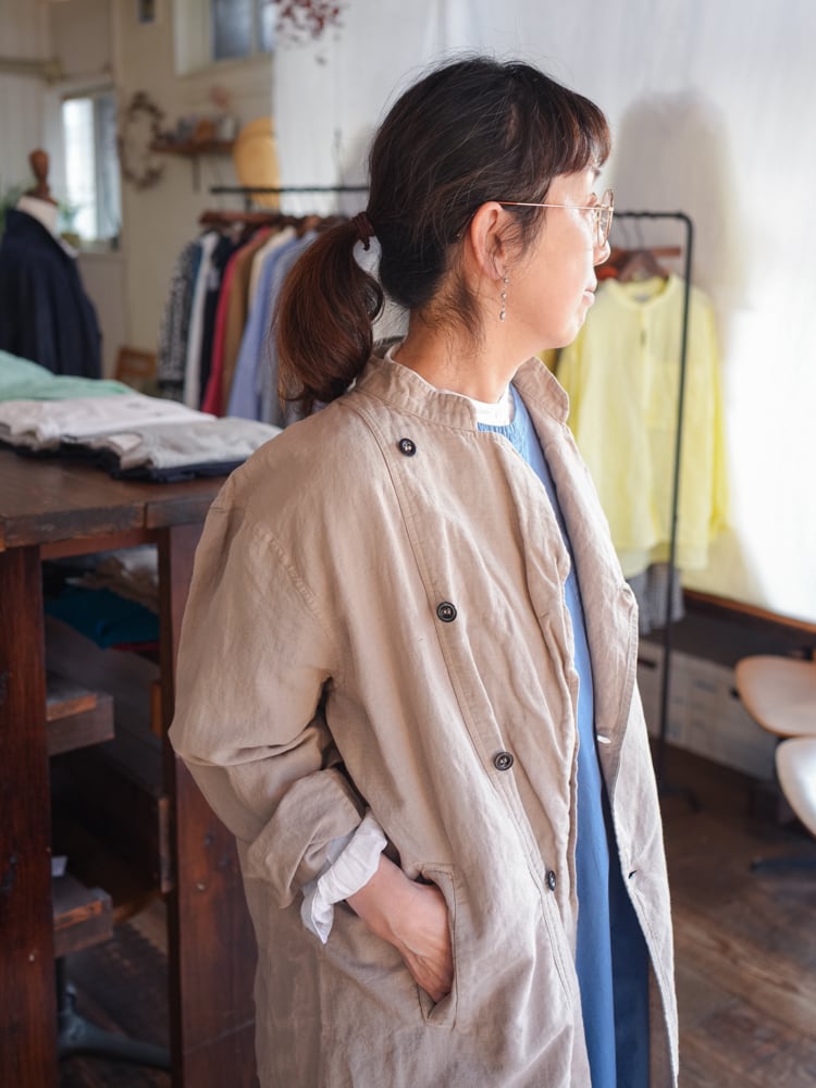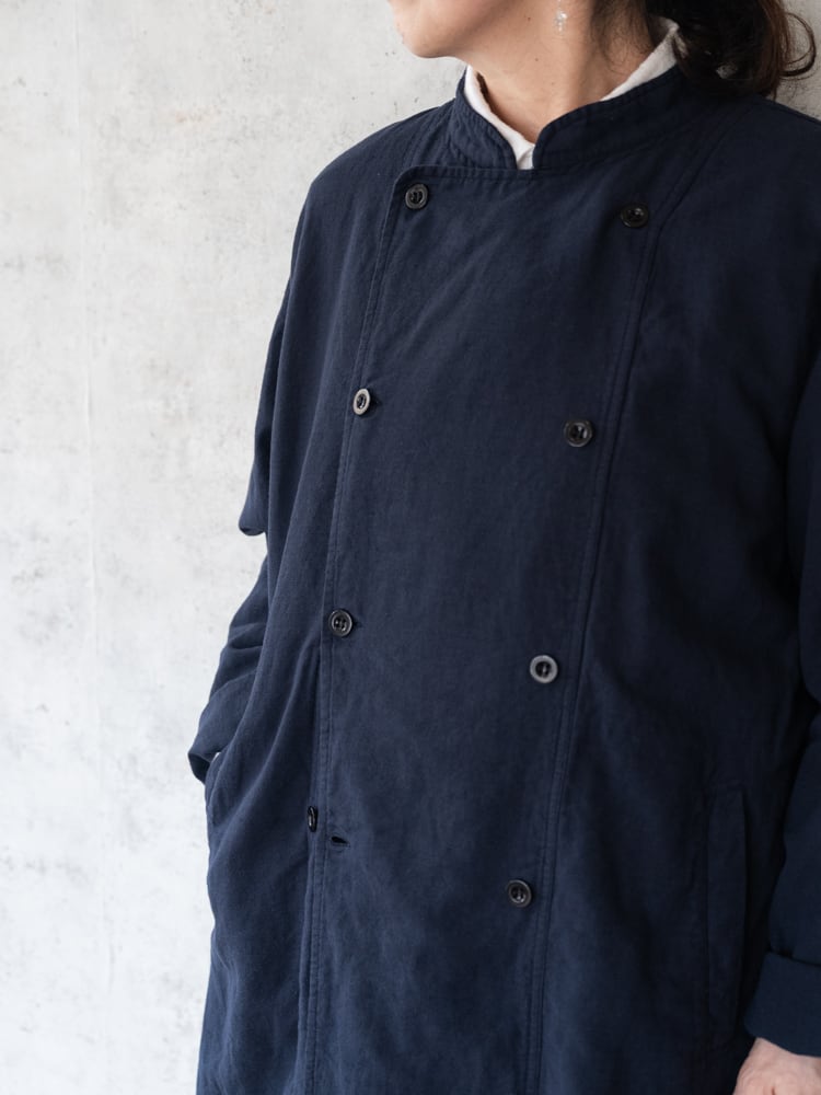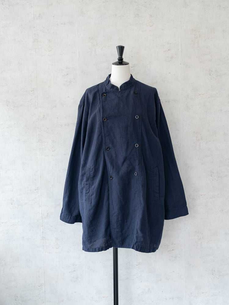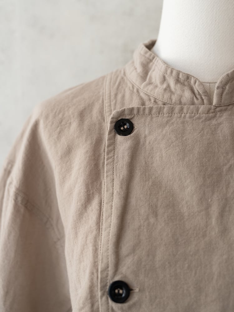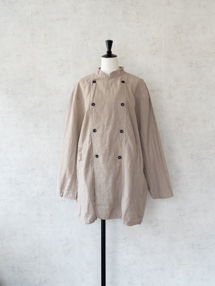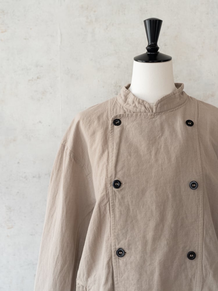 [HTS] コットンリネンスタンドカラーダブルブレストジャケット