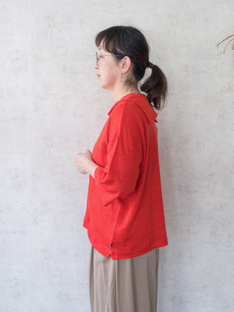 リネンの産地であるベルギーで厳選された原料のみを使用したベルギーリネンを使用した小ぶりなセーラーカラーが可愛いマリネT。
