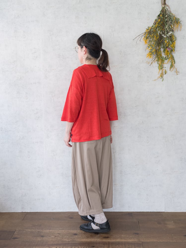 涼し気な透け感と麻特有のシャリ感、しなやかな風合いが軽やかな着心地の良さに繋がります。
