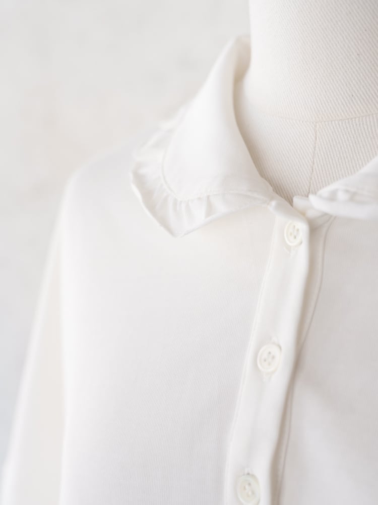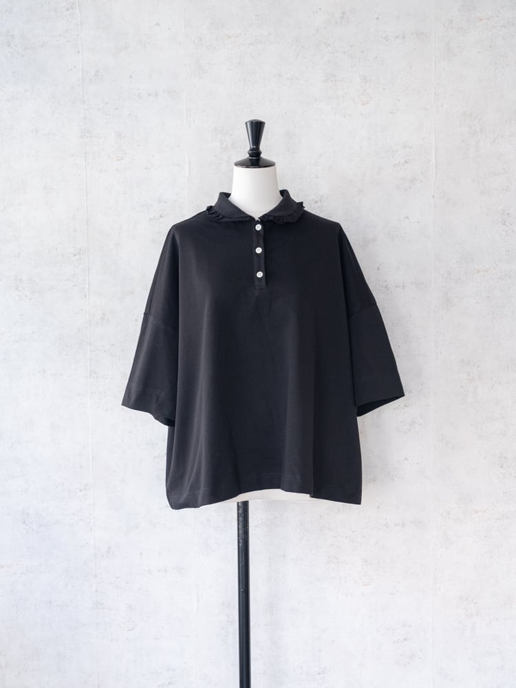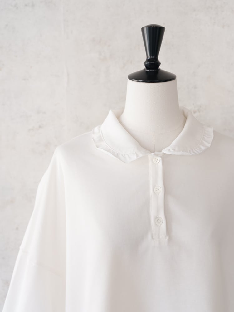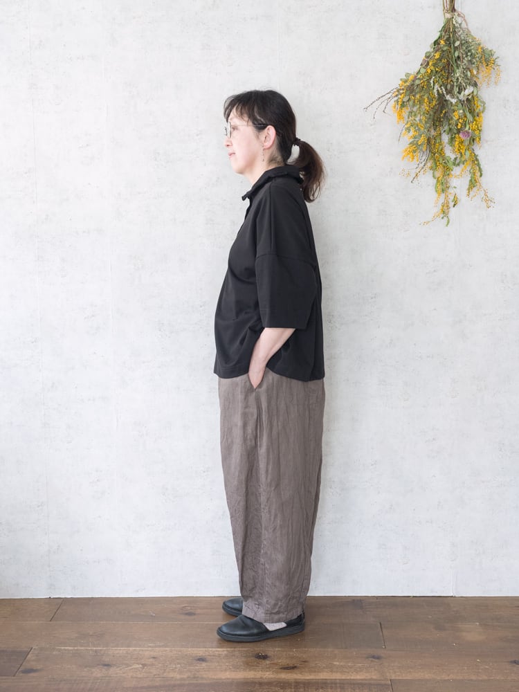 カットソー素材でもハイゲージの天竺素材はしっかりとしたハリがありキチンと感と肩の力の抜けたリラックス感を合わせ持った大人なポロイシャツに。