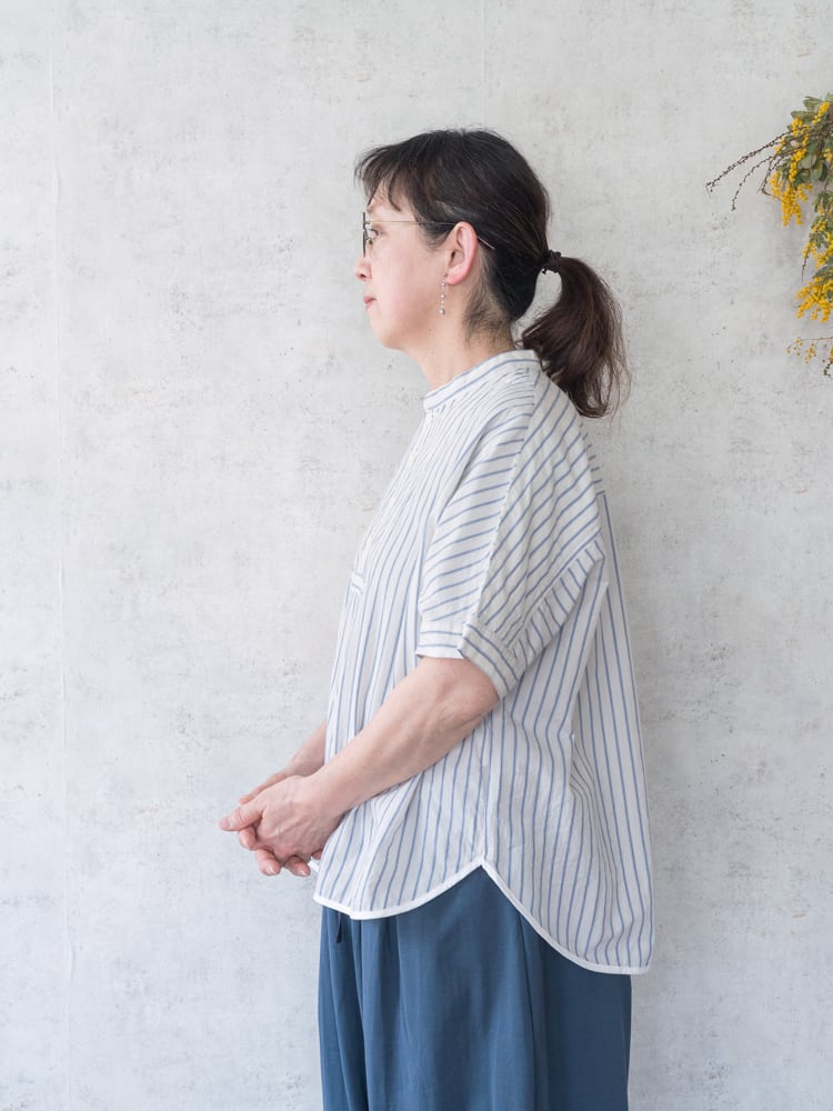 さらりとした着心地のコットンリネンシャンブレーを使用したドルマンスリーブで身幅にかけてゆったりとしたサイズ感のプルオーバー。