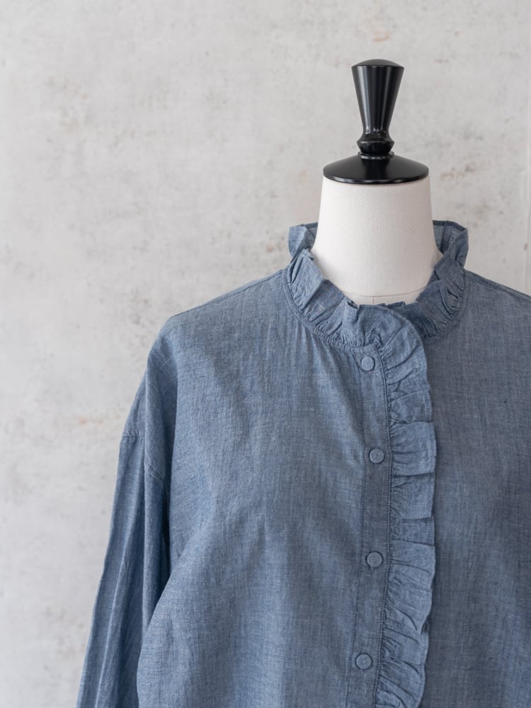 [maison de soil] シャンブレーフリルカラーシャツ