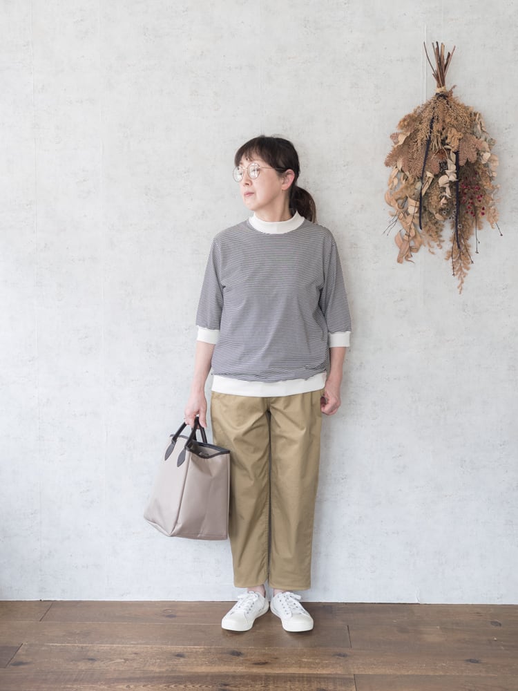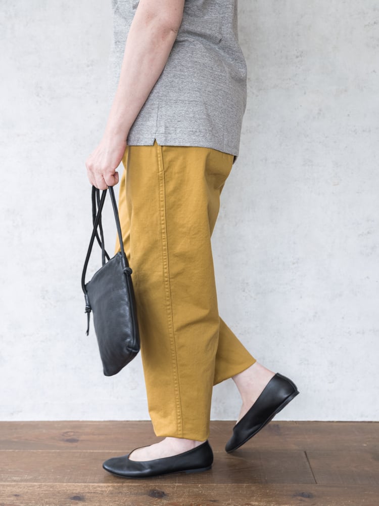 腰回りに程よく余裕があり、すっきりとしたテーパードシルエットで、家事や外出、旅行まで幅広く活躍。日常に自然と馴染む一本です。